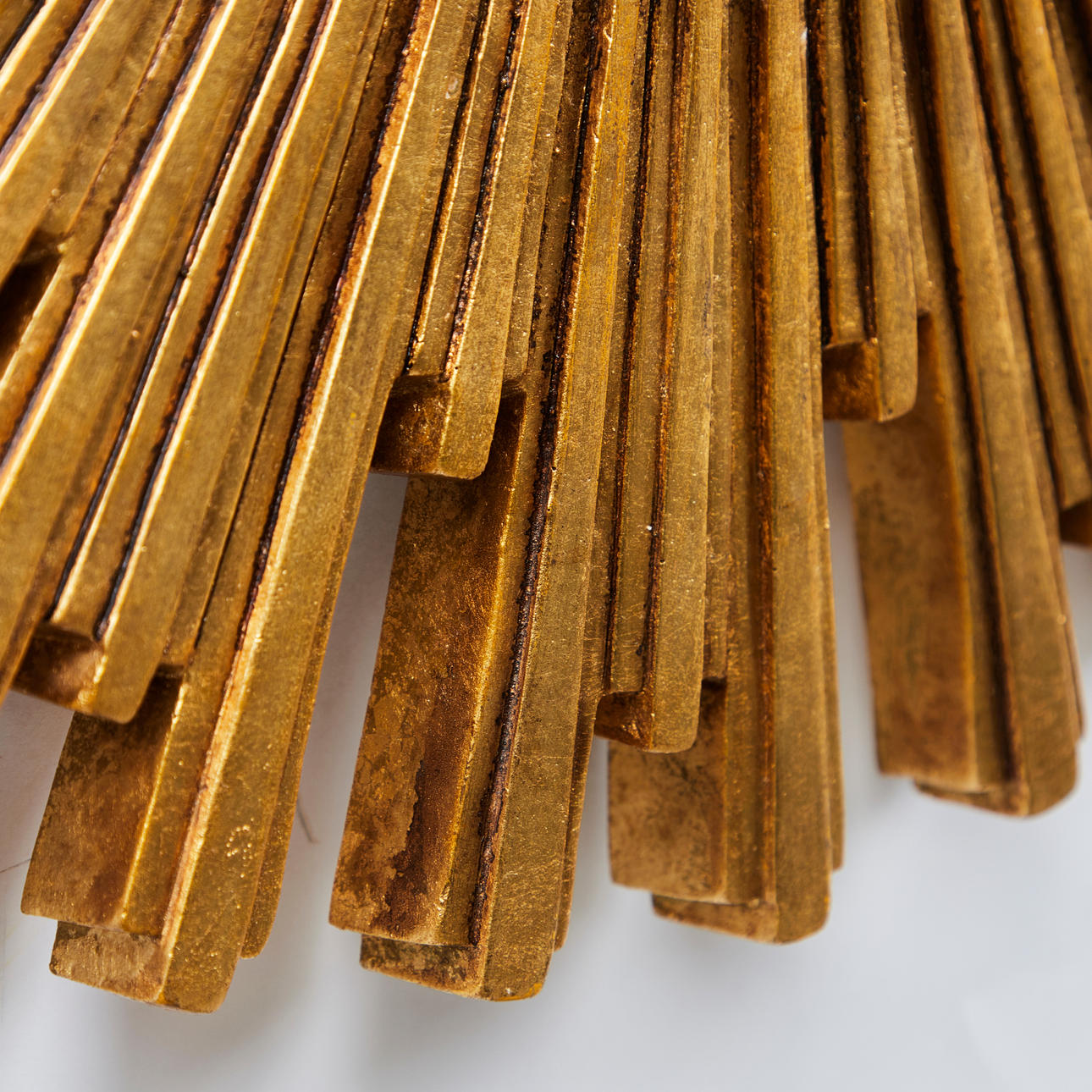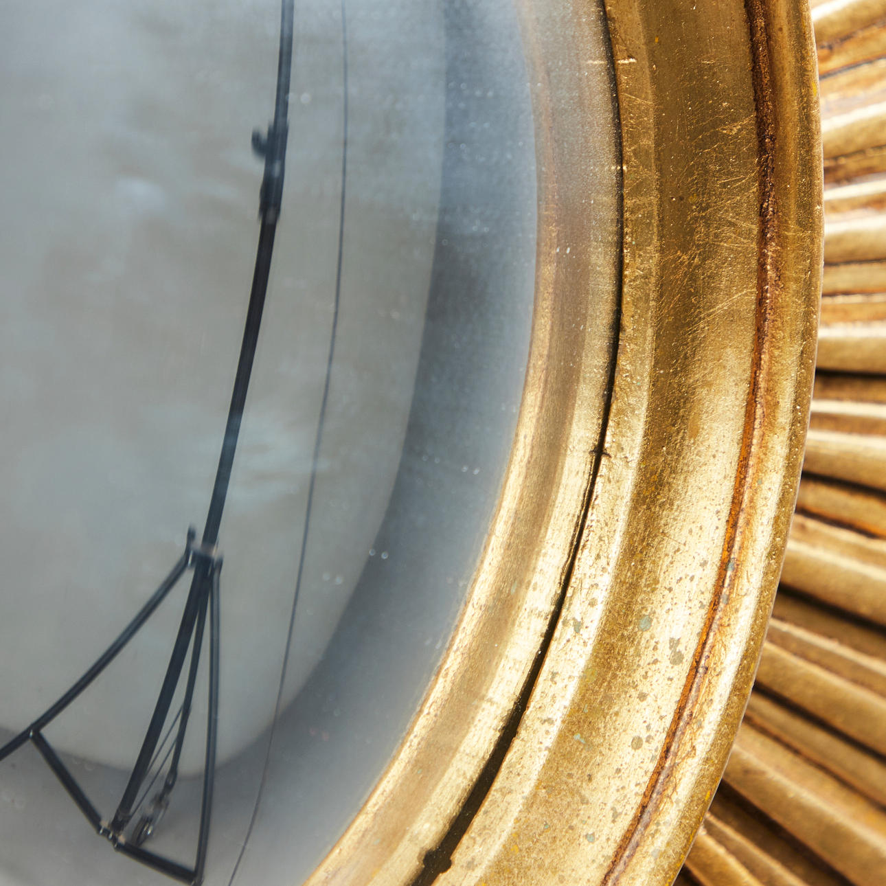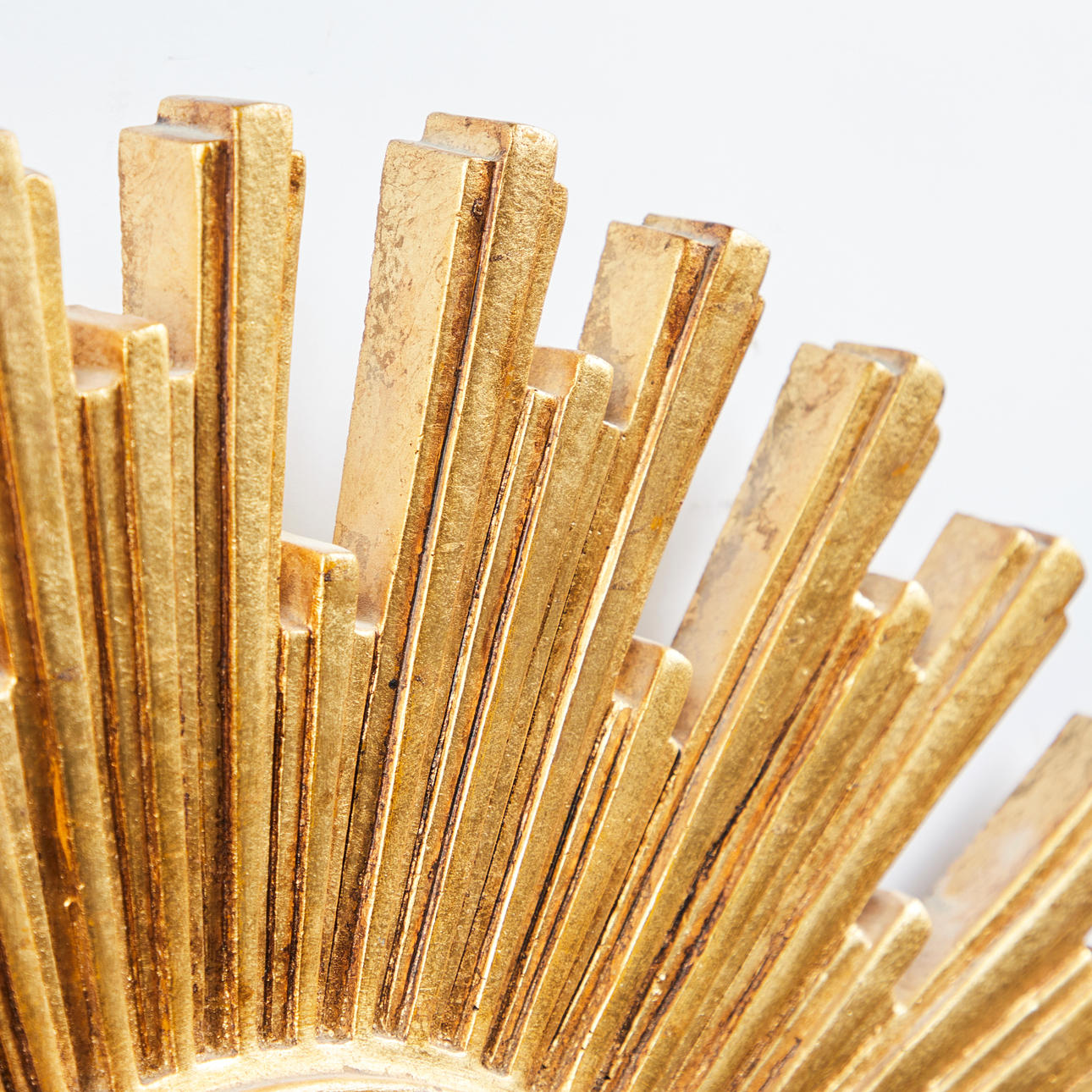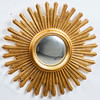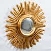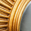 Espejo de pared/espejo de sol. Espejo de pared con superficie de espejo redonda y marco en forma de sol en resina lacada en oro, D.55cm.