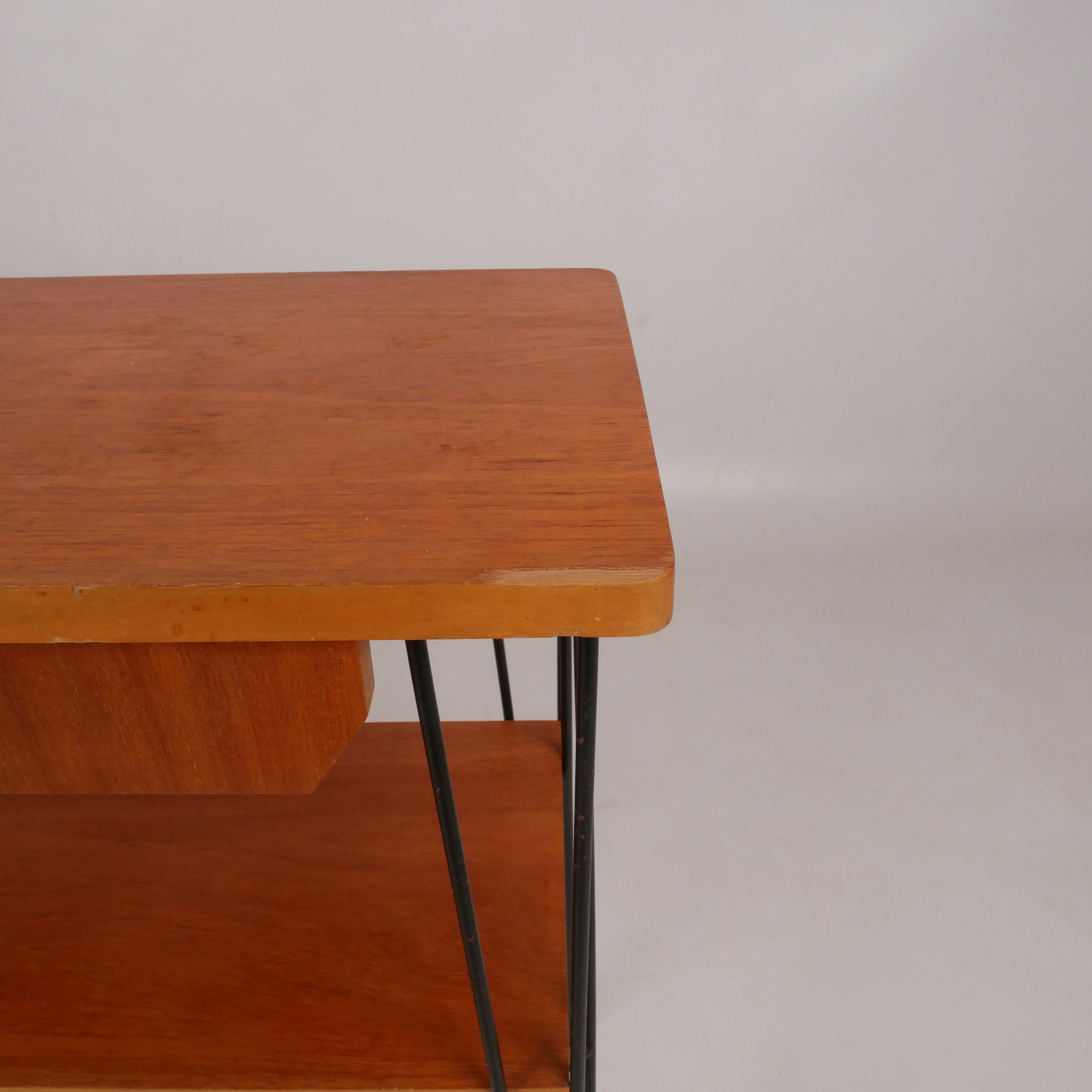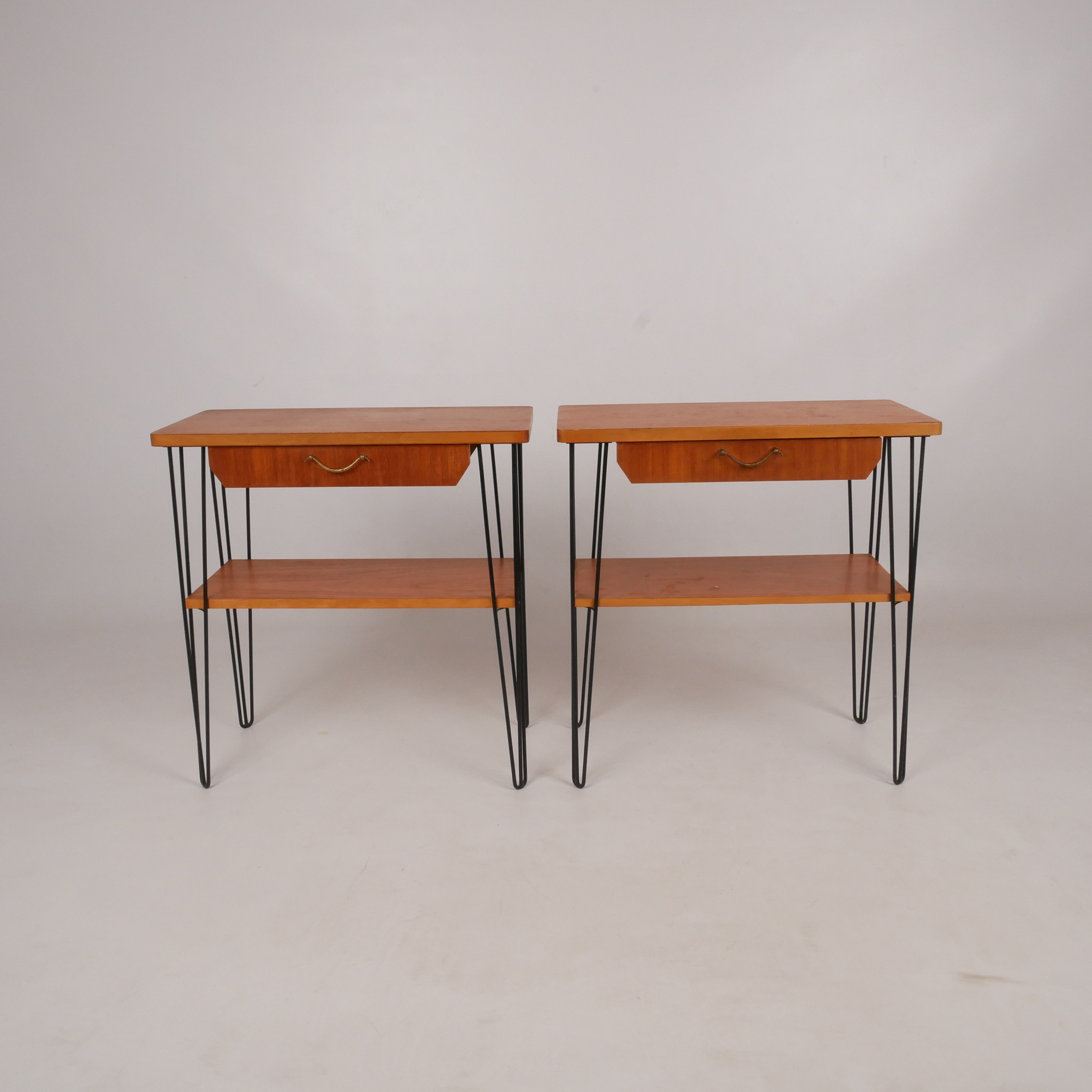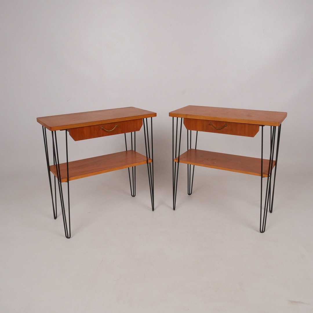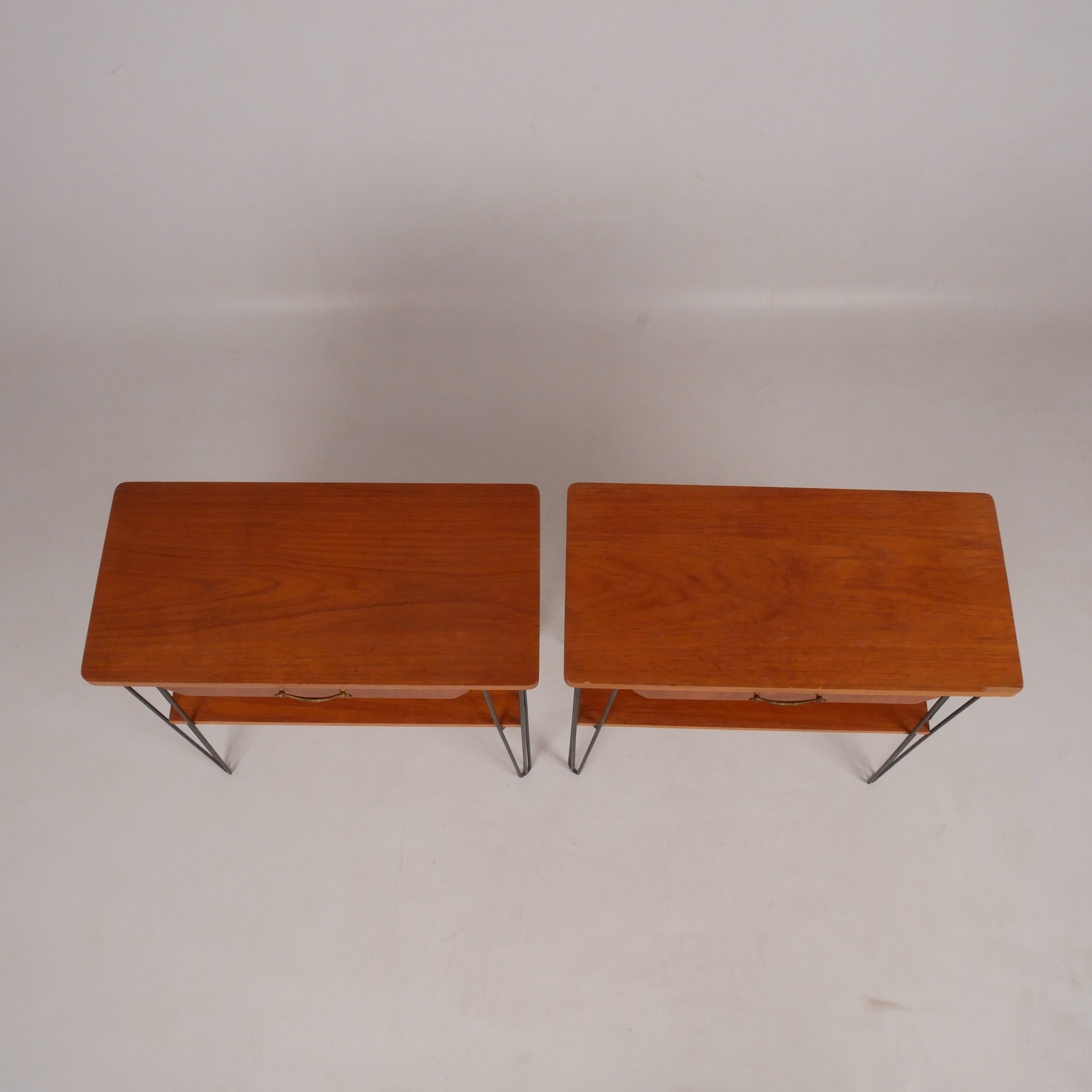 2659913. MESA DE CAMA, modelo string, teca. Un par, años 50/60.