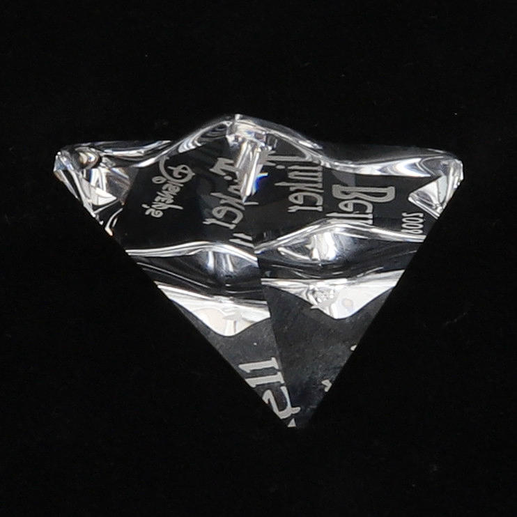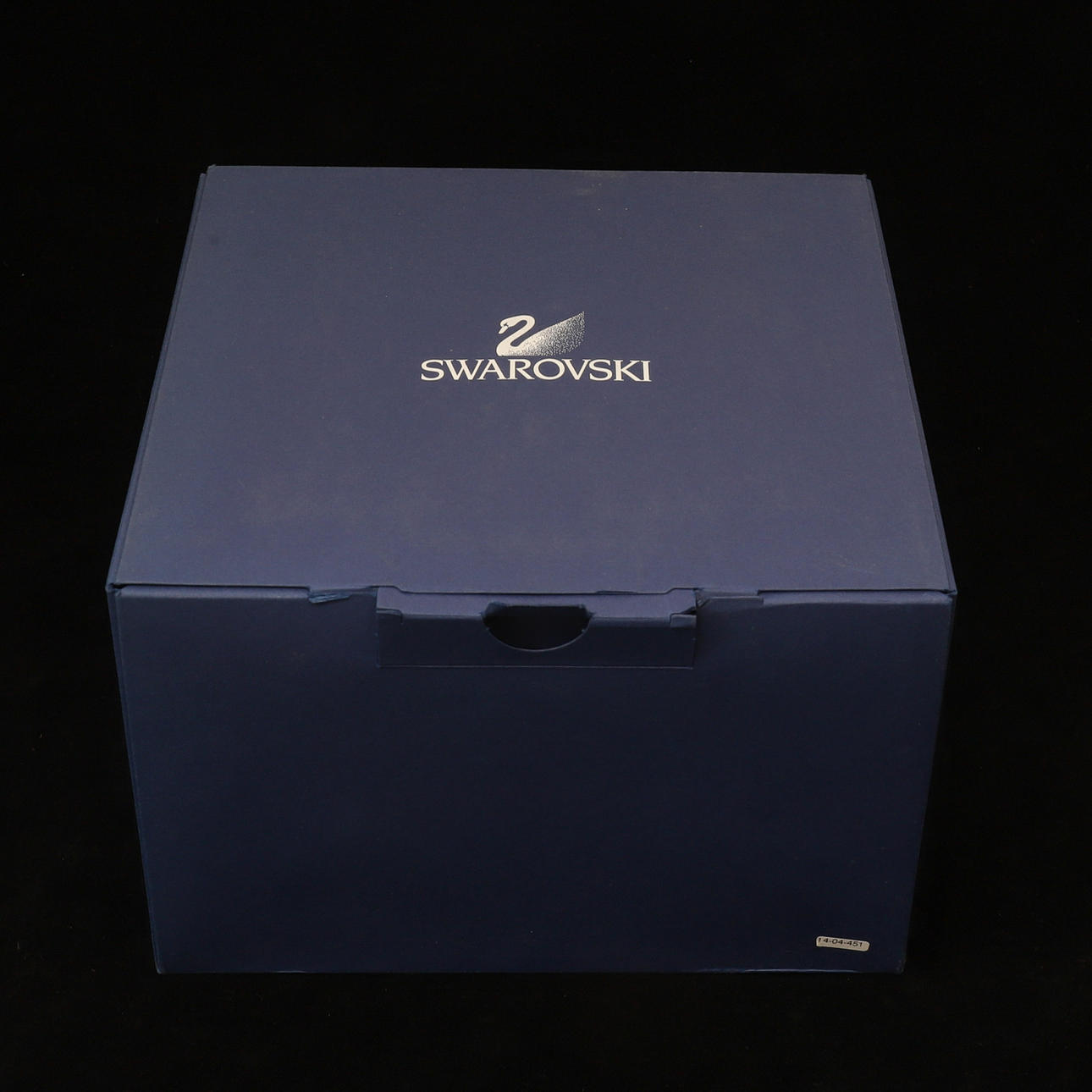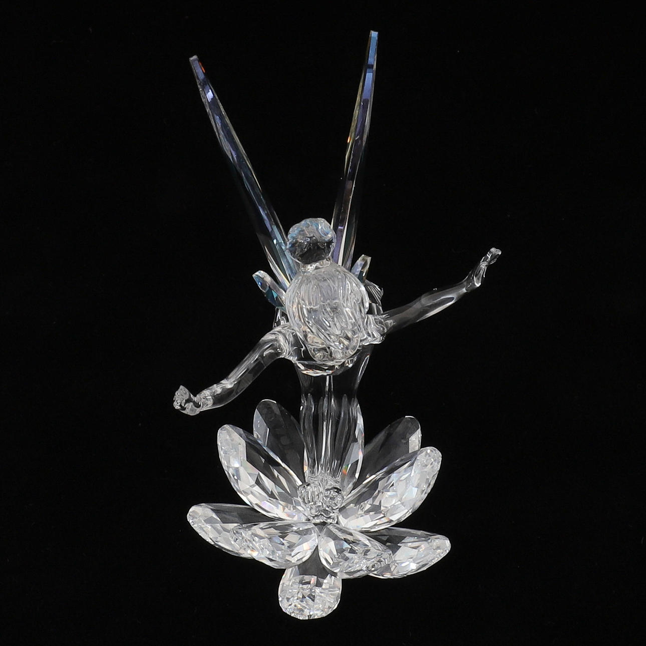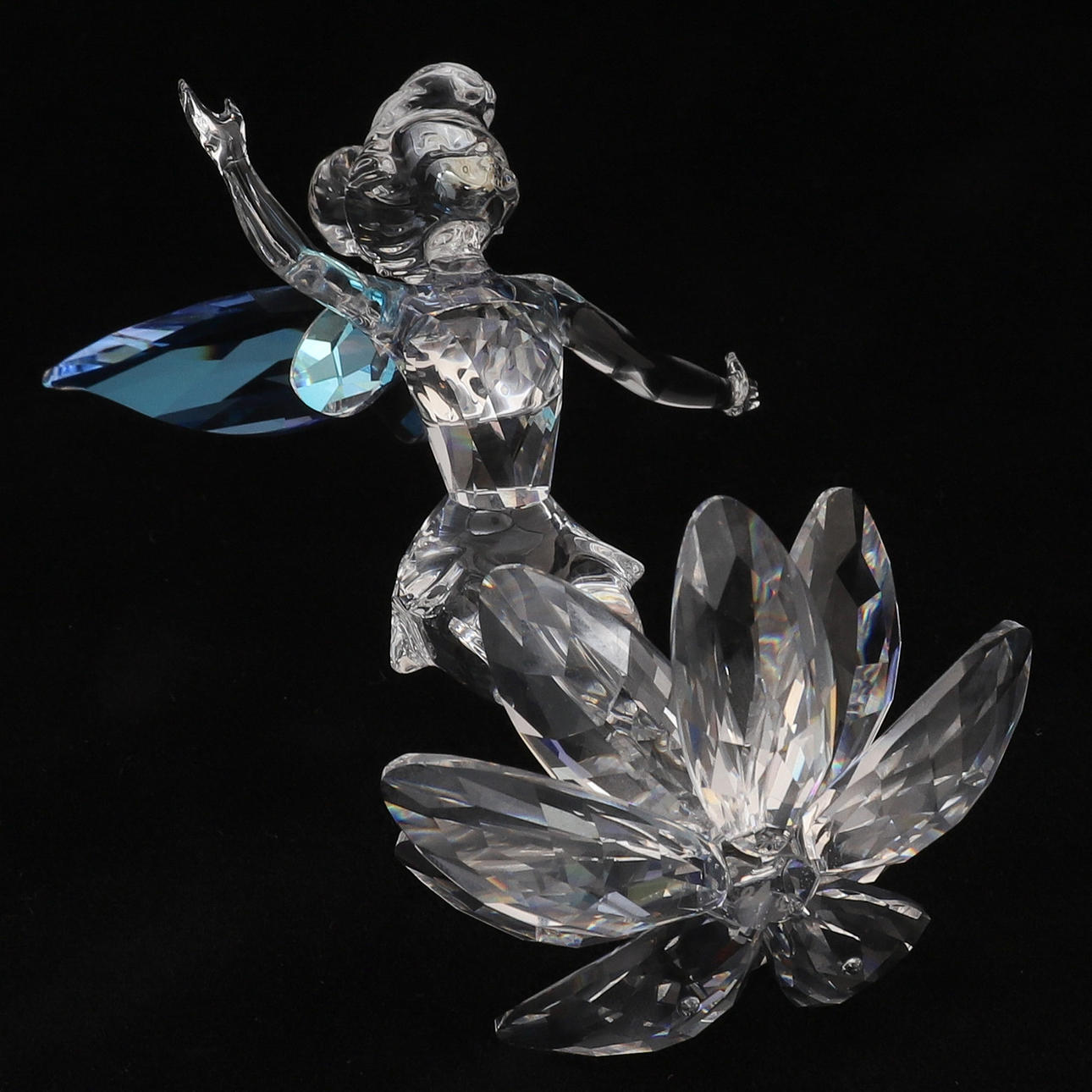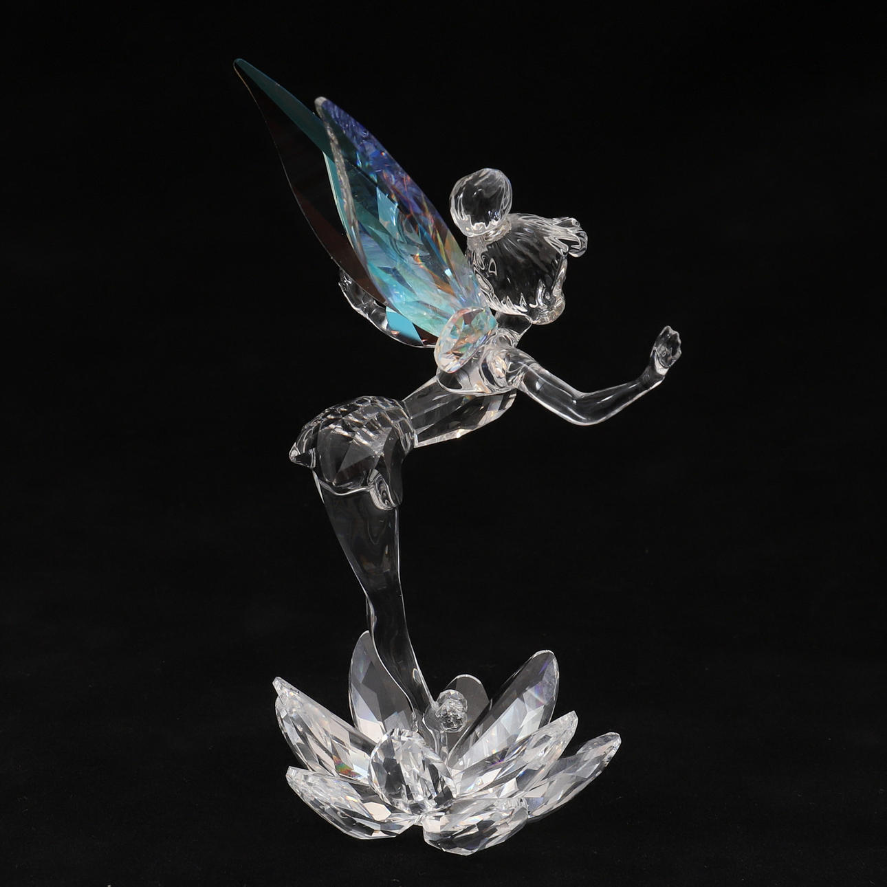 número 905780 en cristal transparente facetado con delicadas alas de colores, de pie ligeramente inclinado sobre una base en forma de flor, 12 cm de altura, viene con la placa 'Tinkerbell 2008', en caja original equipada y cubierta exterior de cartón.