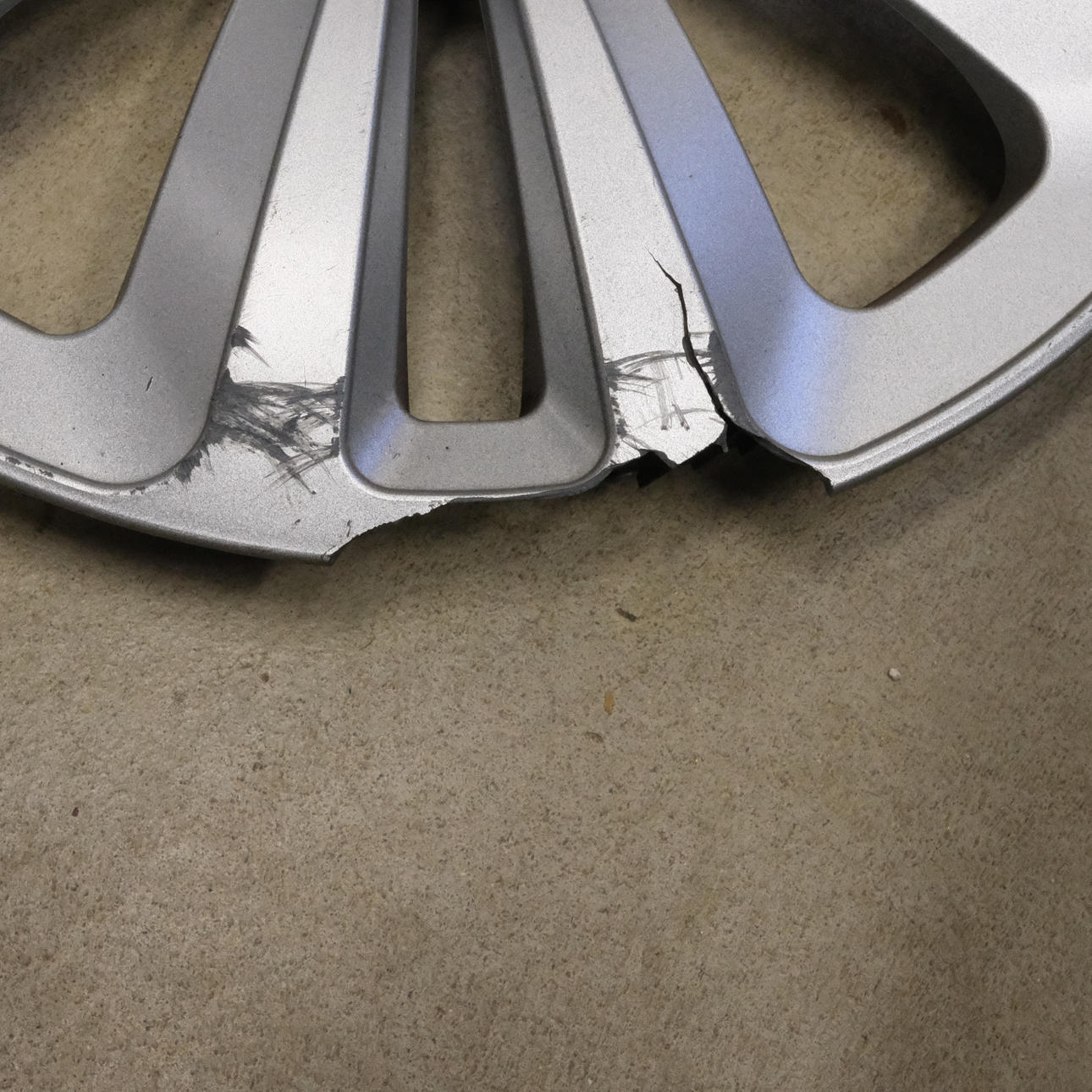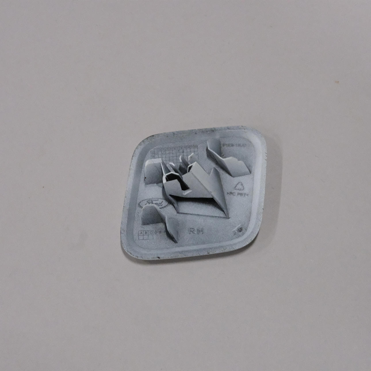Las cubiertas del espejo retrovisor y el vidrio indicador con daño.