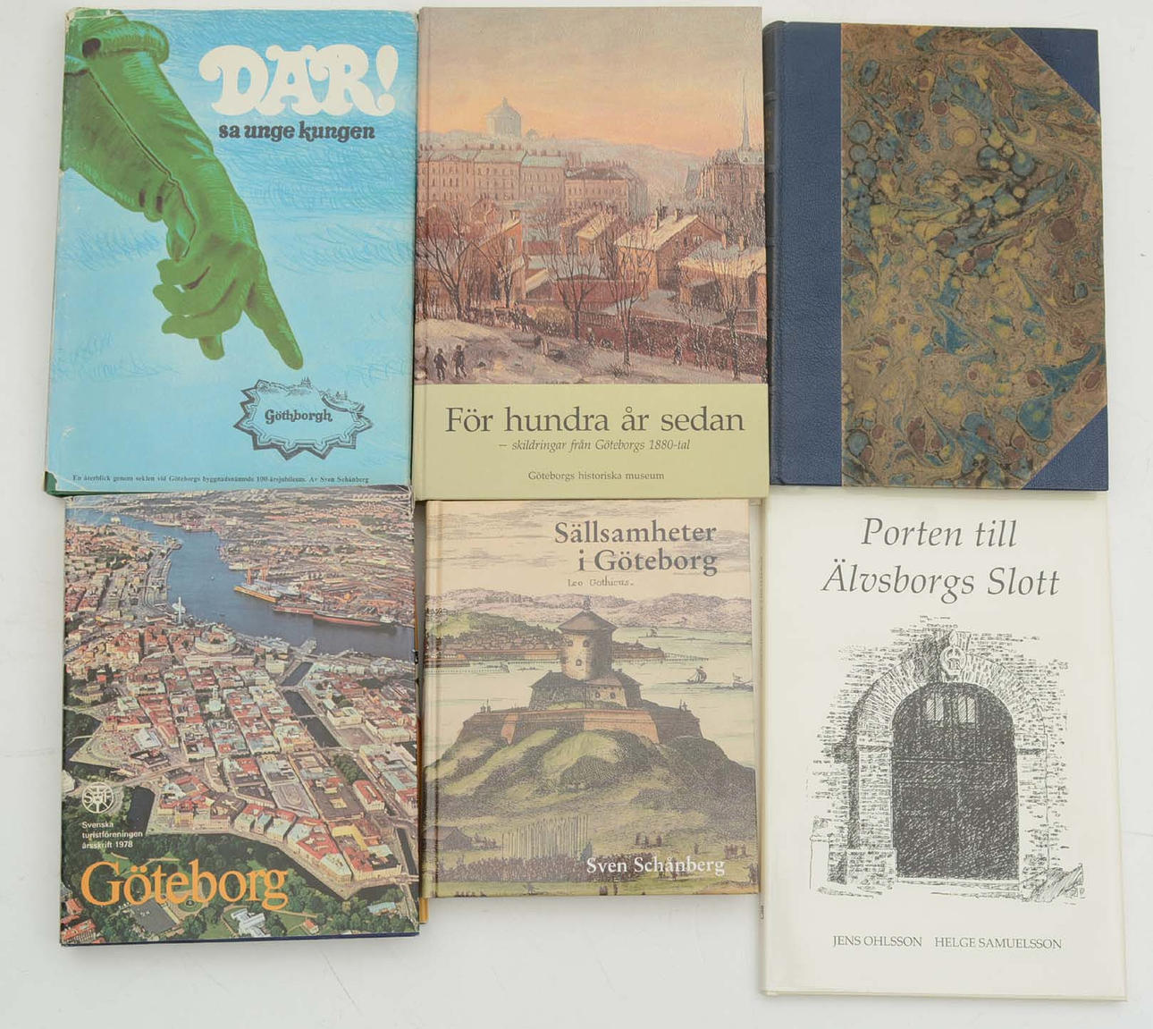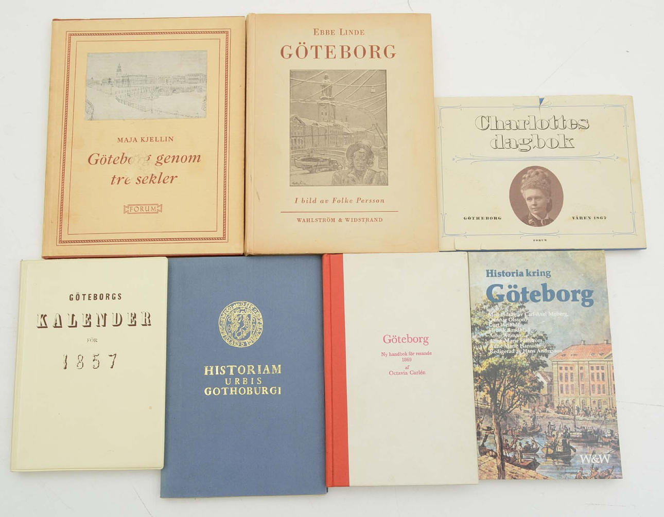 Nuevo manual de Gotemburgo para viajeros 1869 / facsímil 1970 Calendario de Gotemburgo para 1857 / facsímil 1970 Historiam urbis Gothoburgh / No. 351/500 1974 Historia alrededor de Gotemburgo / 1982 Diario de Charlotte 1867 / nueva edición 1971 Gotemburgo en imagen de Folke Persson / 1948 Reuniones en Gotemburgo / 1998 Gotemburgo / 1978 Gotemburgo a través de tres siglos / 1950 ¡Allí! dijo el joven rey / 1975 Hace cien años / 1984 La puerta del castillo de Älvsborg / 1996 En la era de la crinolina / 1937.