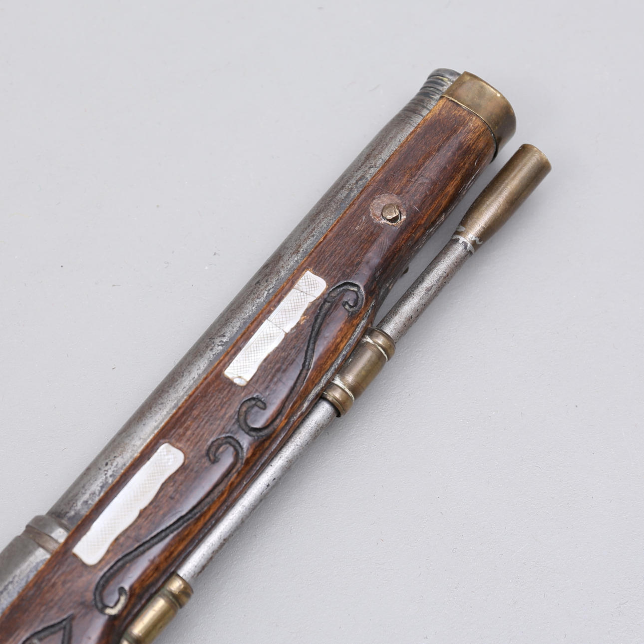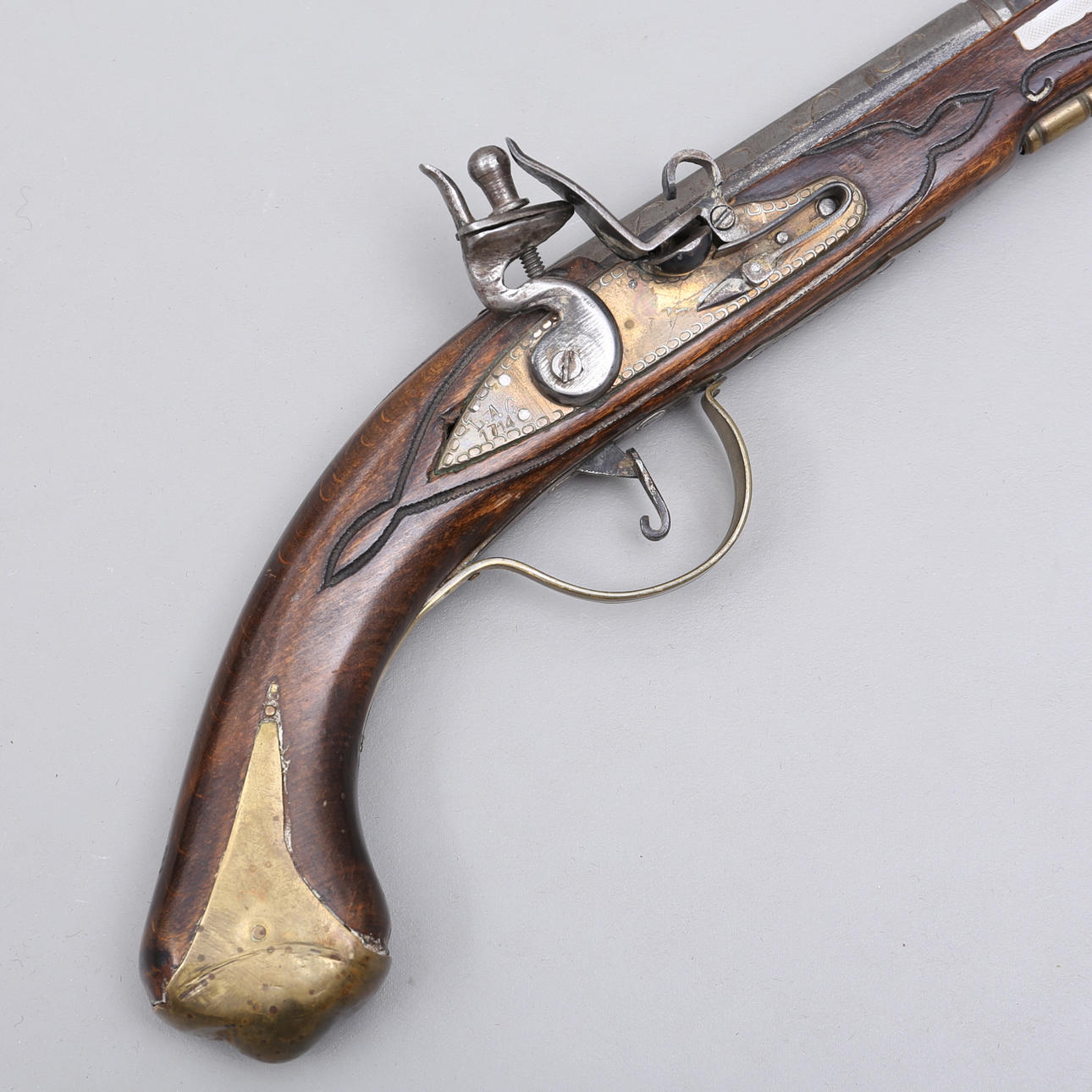PISTOLA FLINT LOCK, madera/latón, réplica.