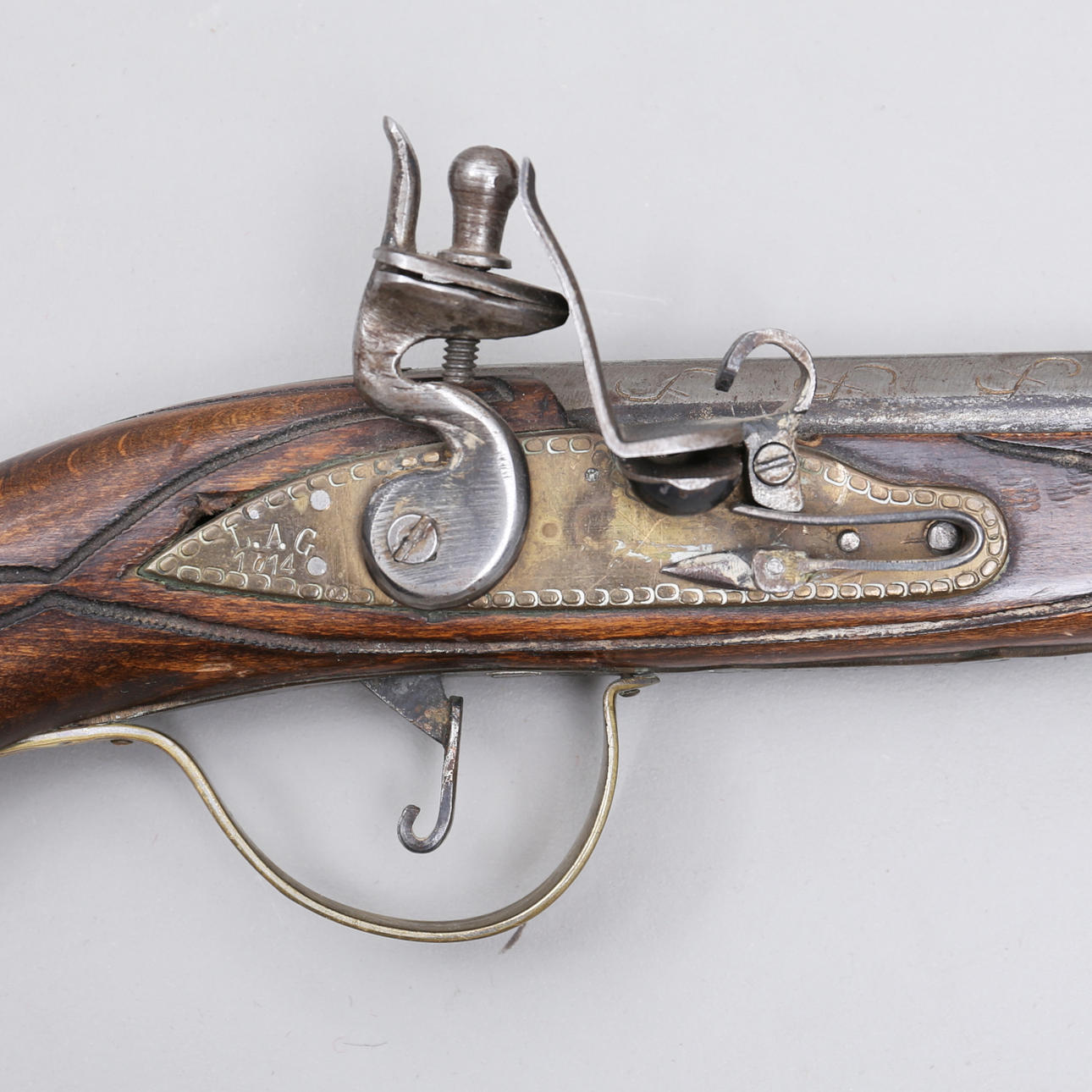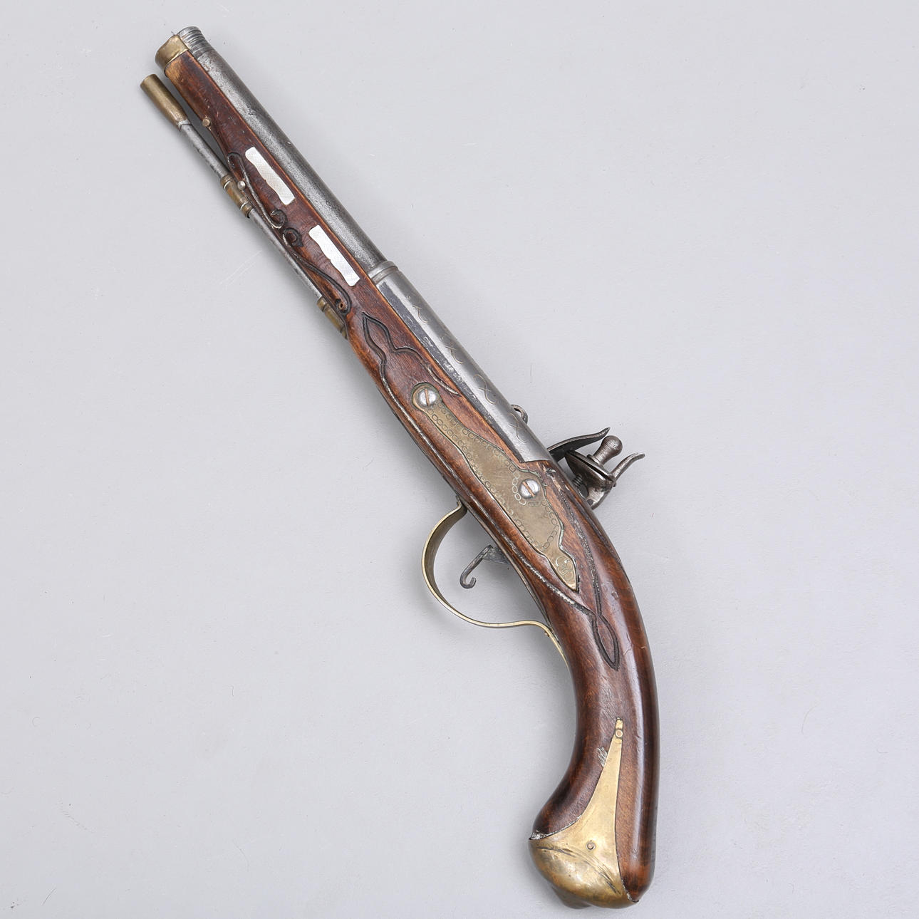 2678861. PISTOLA FLINT LOCK, madera/latón, réplica.