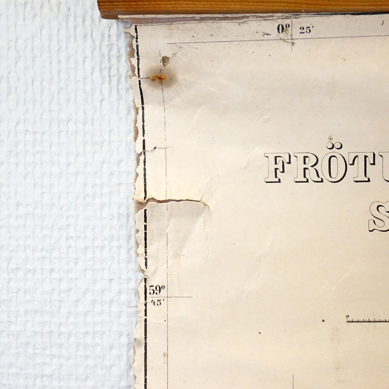 Medido en 1904, escala 1:50.000 Tiras de madera en la parte superior e inferior, colgadas con una cuerda Dimensiones 154 x 75 cm incluidas las tiras de madera.