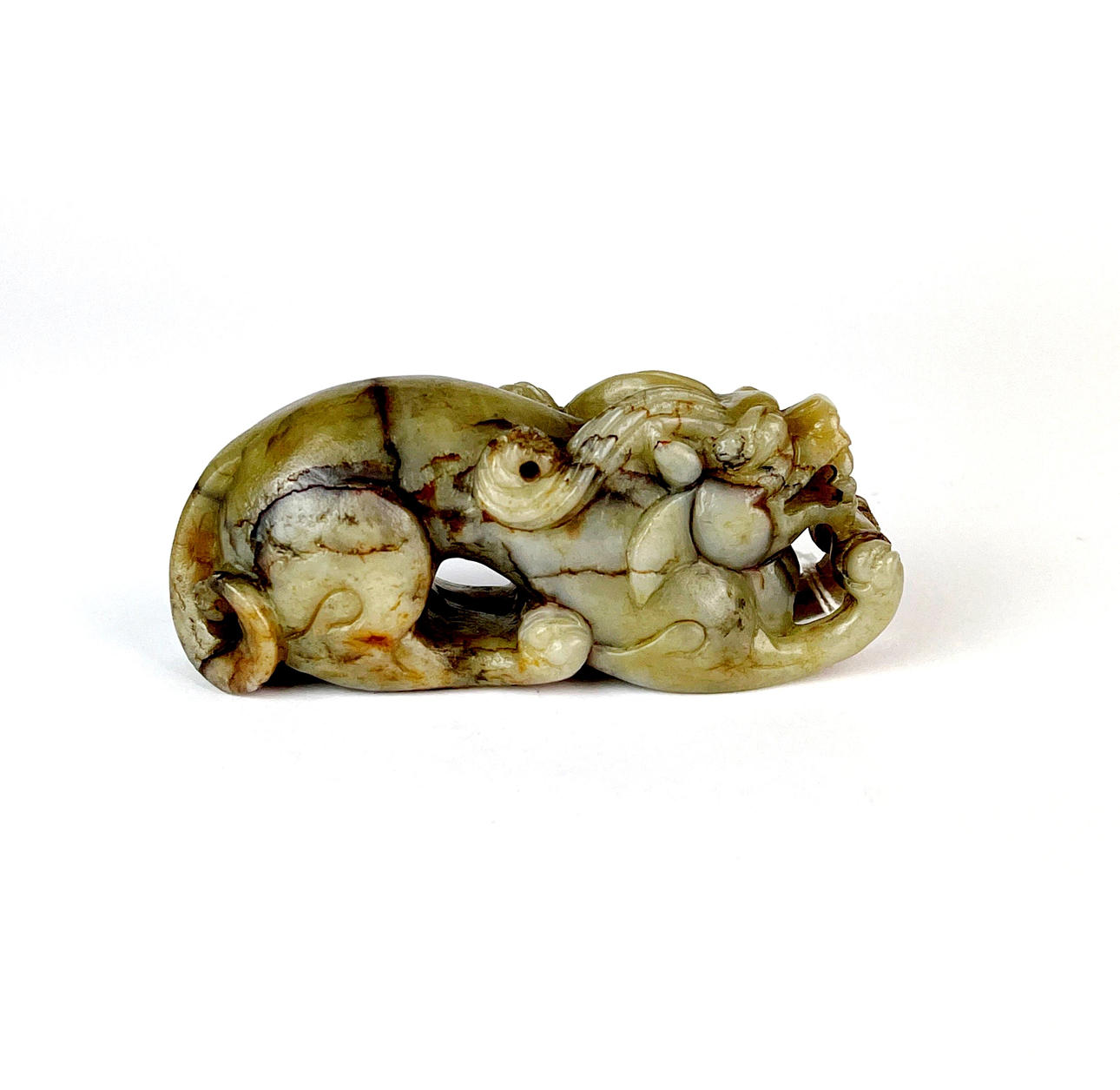 Una figura china tallada en jade de un joven dragón, L. 10,5 cm. Alt. 4cm.