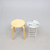 Taburete, madera curvada, "Frosta", IKEA, altura aproximada 45 cm, diámetro aproximado 3 cm.