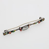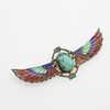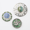 6 broches en plata con materiales como esmalte, nácar y piedra.
