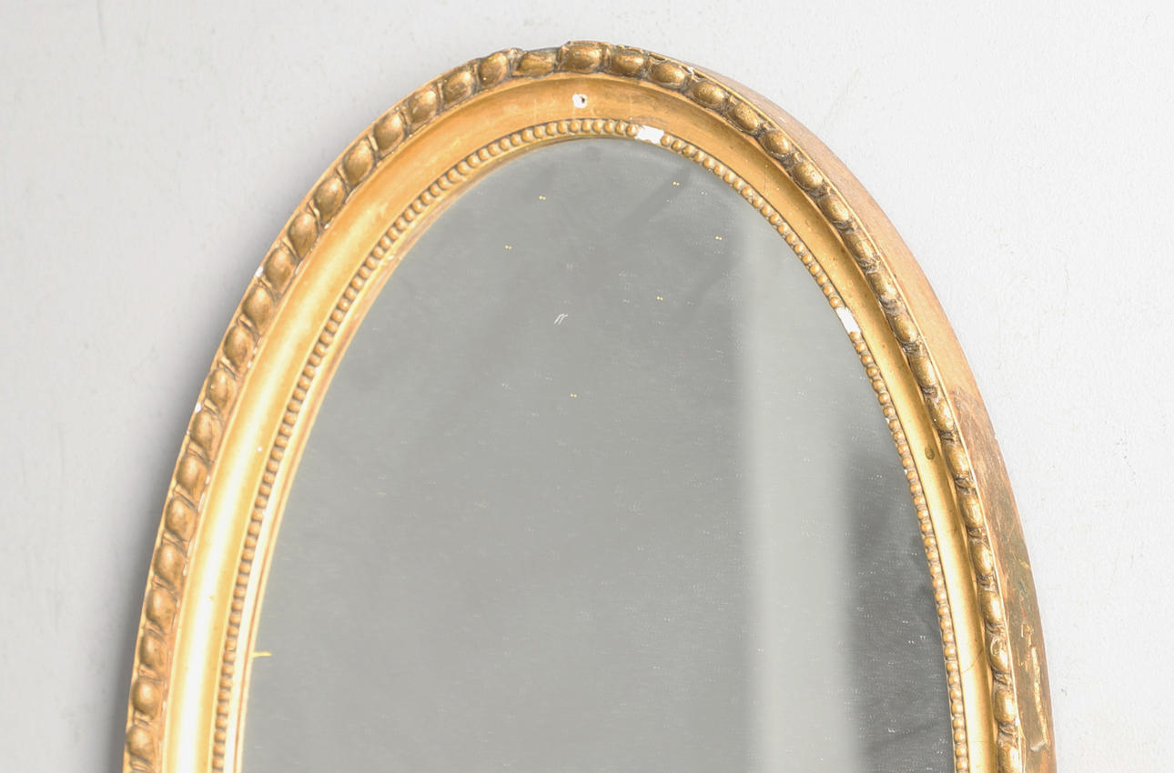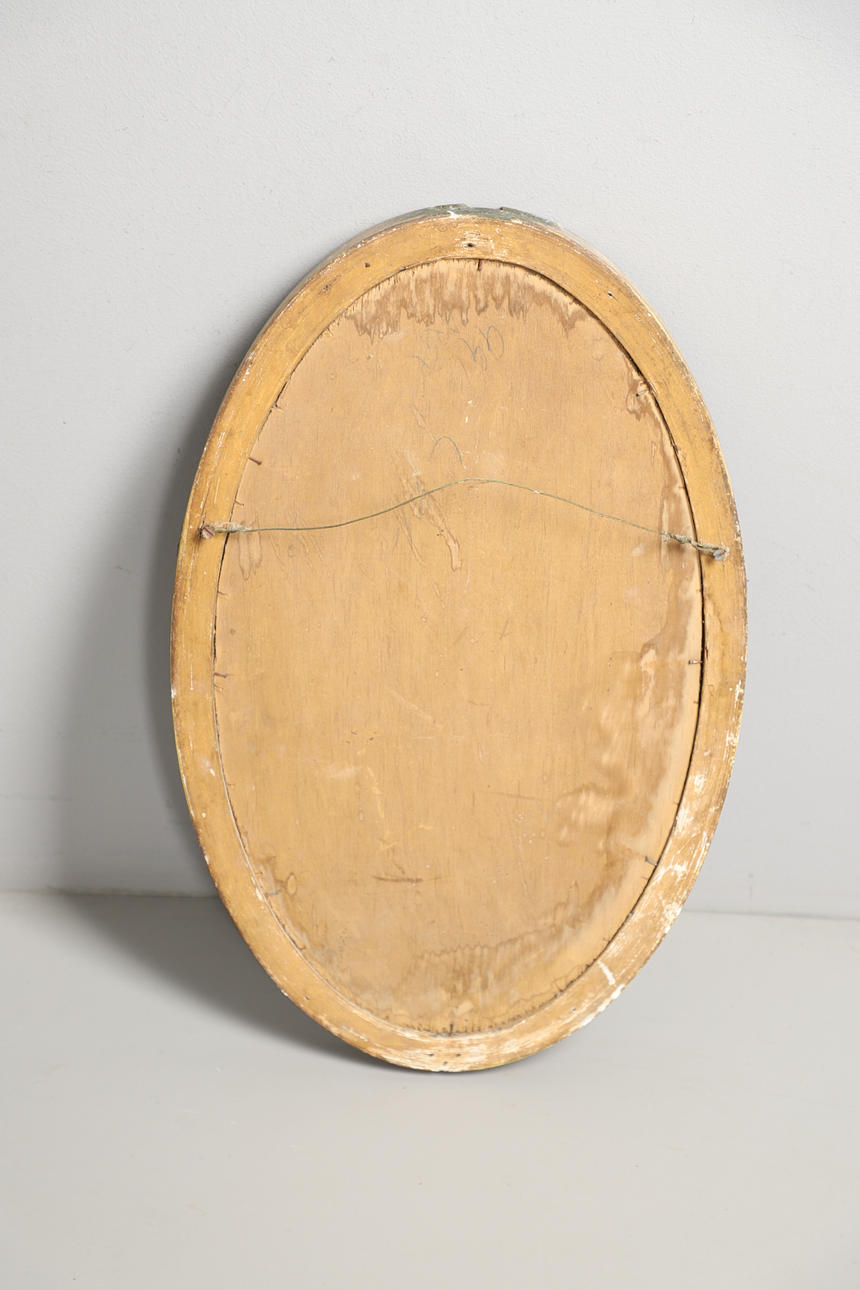 Se puede montar en la pared, marco de yeso con cuentas pintado en oro. Largo 57cm x Diametro 37cm.