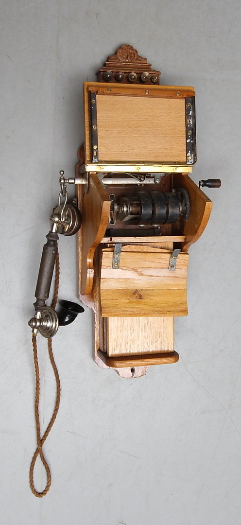 269797. TELÉFONO DE PARED, roble, hacia 1900.