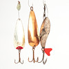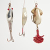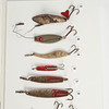 1. "Dasslocket", tipo Kaleva montado en la parte trasera (Sd) 2. Tirador especial de cuchara grande (HJAB) 3. Parpadeo (divertido) 4. Parpadeo (divertido) 5. Parpadeo (divertido) 6. Rey gitano 7. Rey gitano 8. Rey gitano 9. Borrador en blanco, pequeño y pesado 10. El movimiento de Hindersen. Nota. los soportes de gancho remachados y soldados 11. Borrador en blanco, acero inoxidable, vidrios rojos, trozo de plomo en el frente 12. Palmer Silver Flutter (Ver 1925) 13. Wiggo B 14. Colorado (Wss) 15. Pescado, giratorio, inoxidable (Rud. Unne) 16. Tirador de hojalata con gancho fijo (Sd) 17. Tirador de hojalata con gancho fijo (Sd) 18. Señuelo caballa, doble anzuelo 19. Elipse (ABU) 20. Borrador en blanco, inoxidable, pesado (SAS) 21. Tarpon (Lff) Sd – Sportfiskedon, Gotemburgo (ABSG) HJAB – Halmstad Järnvarobolag, Halmstad Rola – Rola AB, Estocolmo - cerrado (OT) Se – Shakespeare Comp., Columbia, Spout Carolina, EE. UU. Wss – M. Widforss Handelsaktiebolag, Estocolmo ABU – AB Urfabriken, Svängsta SAS – Maquinista S. Svensson, Norrköping Lff – AB Leidesdorffska Fiskeredskapsfabriken, Gotemburgo - cerrado.