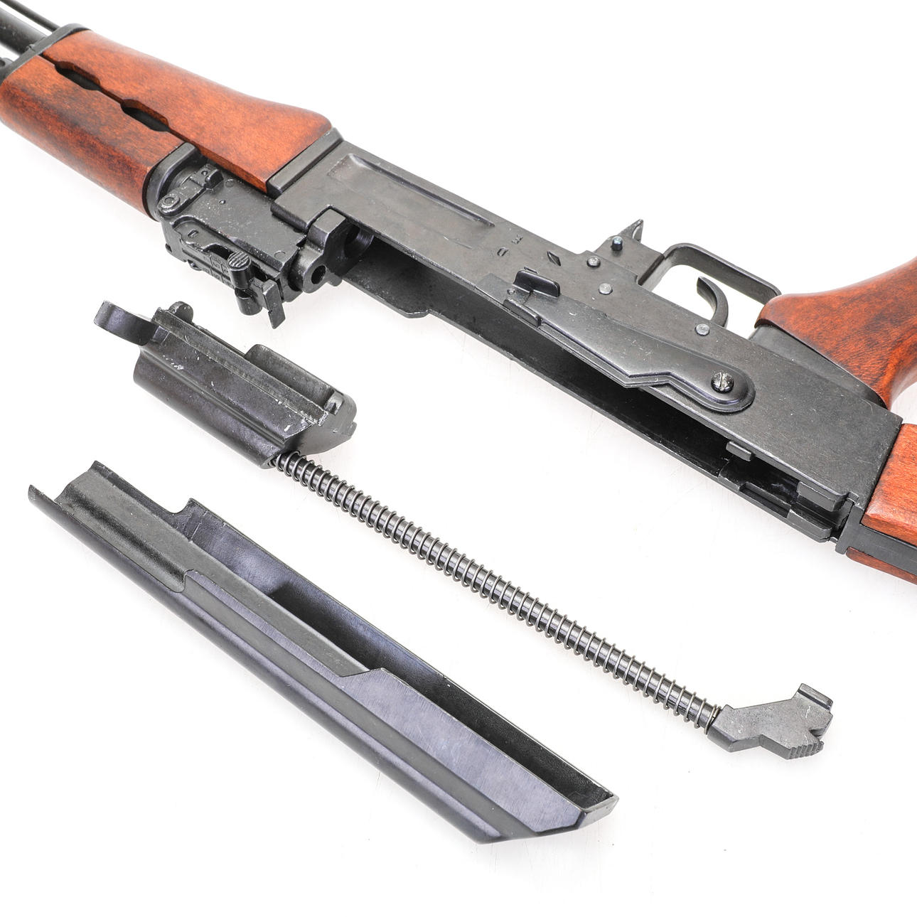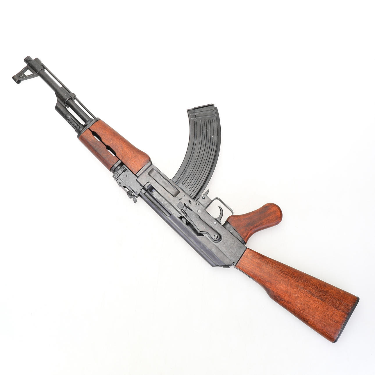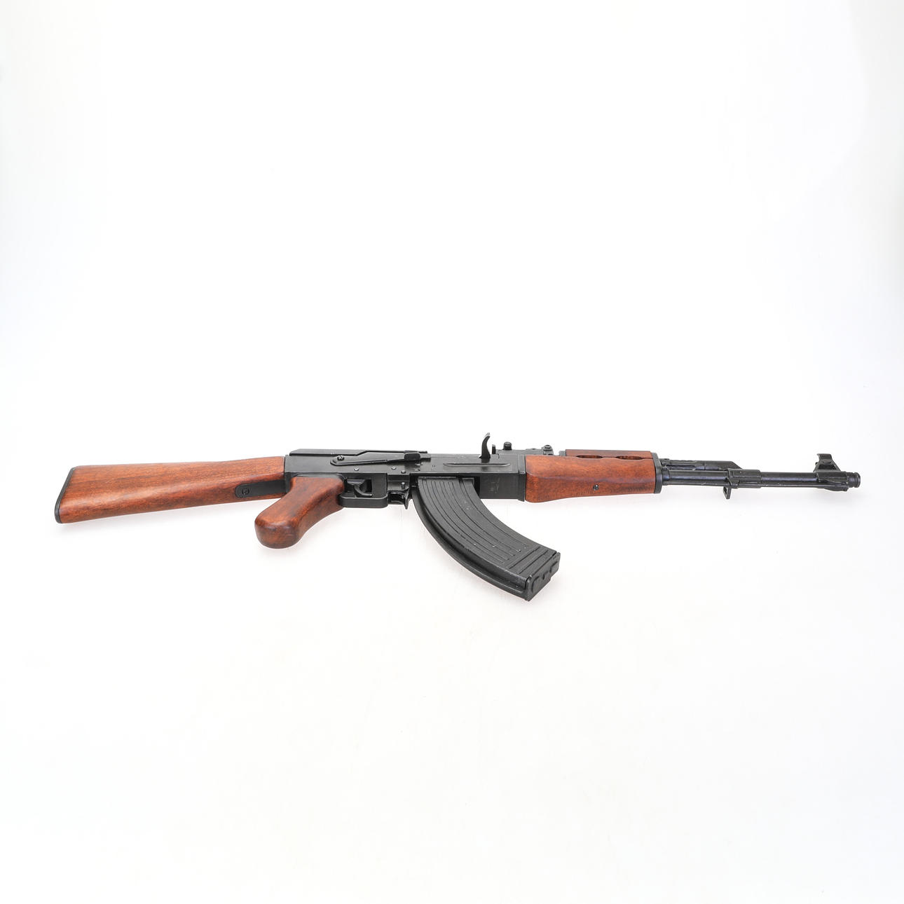 Una réplica de un AK-47 Kalashnikov. La réplica está bien hecha y se puede desarmar y volver a armar como el original.
