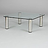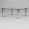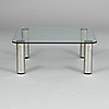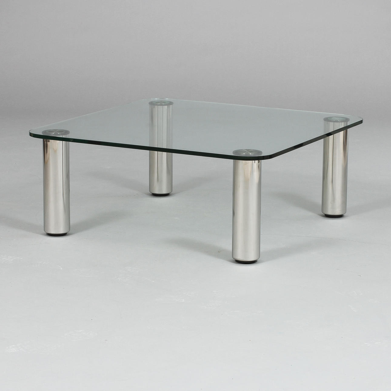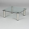 Placa de vidrio sobre hueso en metal blanco. Mesa largo 100, ancho 100, alto 40 cm.