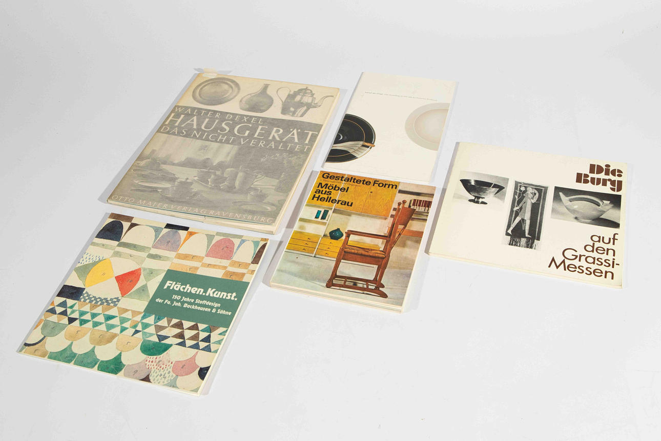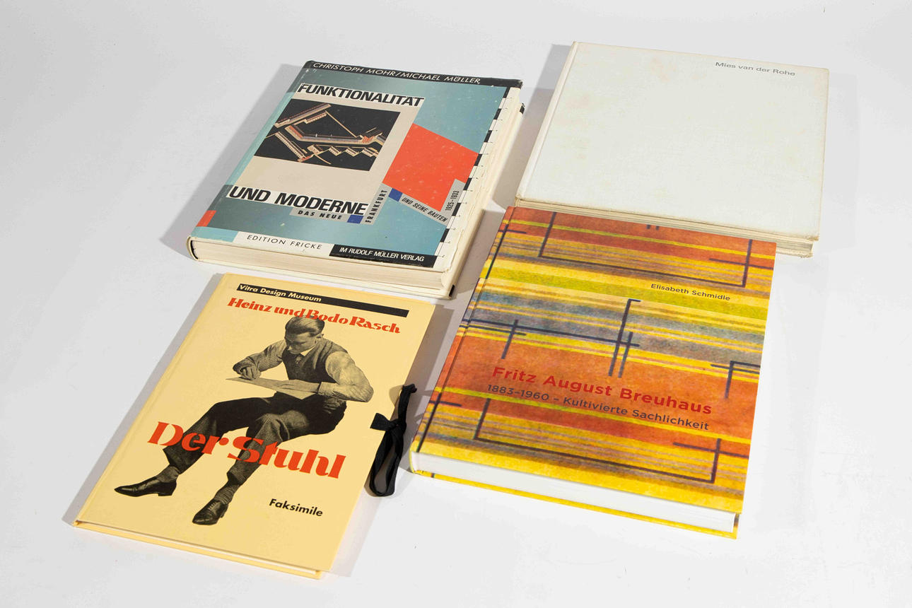"Junkers Dessau" - Hiller von Gaertringen. "Al ritmo del tiempo Hugo Junkers y los años 20" - Helmut Erfurth. "Ludwig Mies van der Rohe y Lilly Reich" - Christiane Lange. "Muebles de acero tubular" - Art Book Company. "Mies en Berlín" - El Museo de Arte Moderno. Castillo de Giebichenstein "plástico". "Stalen Buisstolen" - El museo de la línea continua. "Museo Alemán del Papel Pintado". "Joyería" - Castillo de Giebichenstein. "Folkwang Werkkunstschule Essen". El nuevo apartamento La mujer como creadora" - Bruno Taut. "Una casa" - Bruno Taut. Construcción de muebles en Bélgica" - Museo de la ciudad de Gante para Sierkunst. "El castillo de Giebichenstein" - Wilhelm Nauhaus. Ludwig Mies van der Rohe" - Museo de Arte Moderno. "Buena Forma" - Consejo Alemán de Diseño. "Muebles de acero tubular Thonet" - Vitra Design Museum."Batalla de las Cosas" - Museo de las Cosas. "Arte de superficie 150 años de diseño de telas por Backhausen and Sons". "Muebles de forma diseñada de Hellerau". "El castillo en las ferias de Grassi. "Electrodomésticos que no se vuelven obsoletos" - Walter Dexel. Mies van der Rohe" - Vitra Design Museum. "Funcionalidad y Modernidad" - Christoph Mohr y Michael Müller. "Mies van der Rohe" - Artemis Verlag. "Heinz y Bodo Rasch" - Museo del Diseño de Vitra. "Fritz August Breuhaus" - Elisabeth Schmiedle.