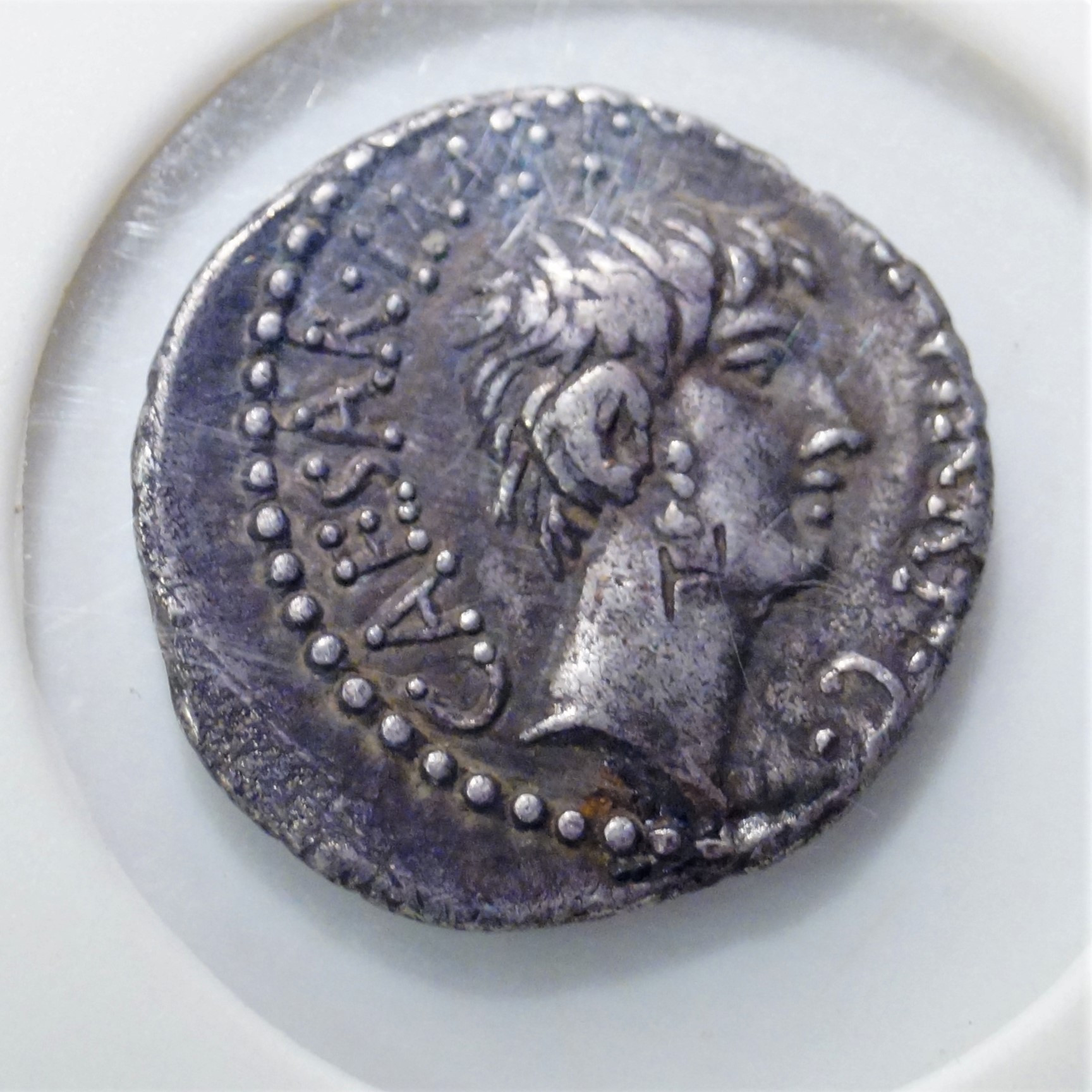 2705581. MONEDA ROMANA, denario, Marco Antonio/Augusto (Octavio).