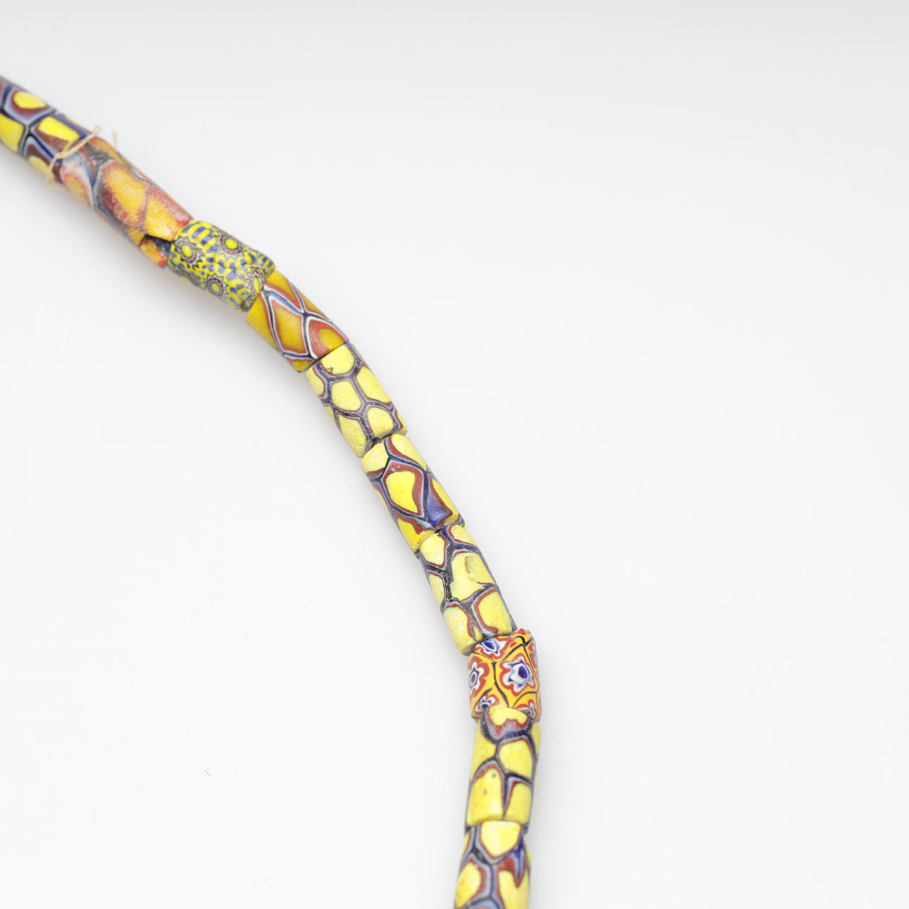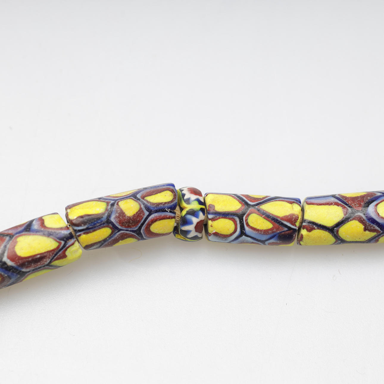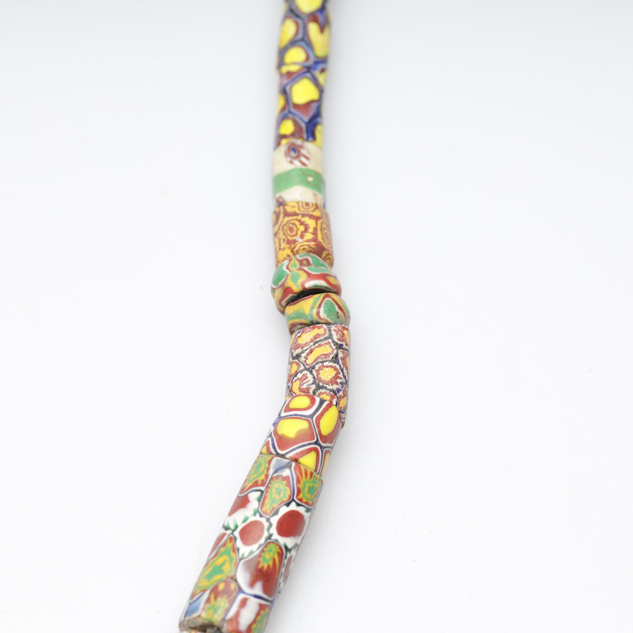 Perlas de pasta de vidrio en diferentes tamaños y colores. Hilo vegetal. Largo aproximado 78 cm.