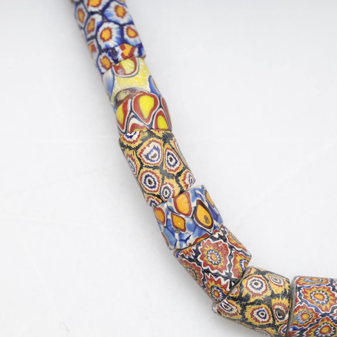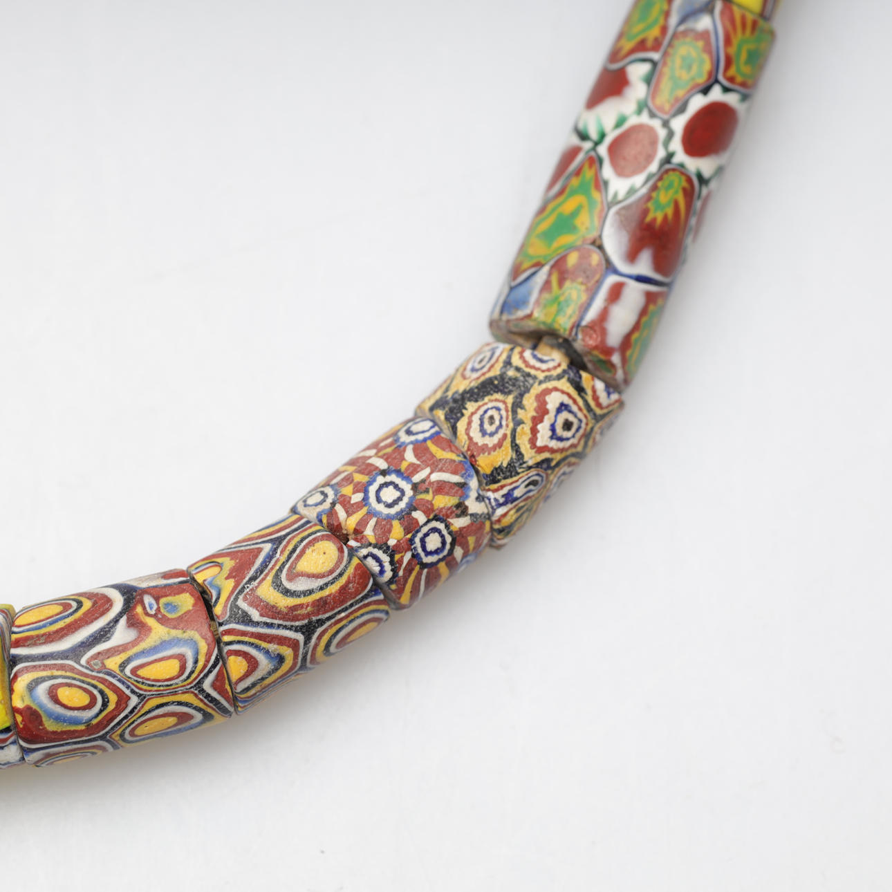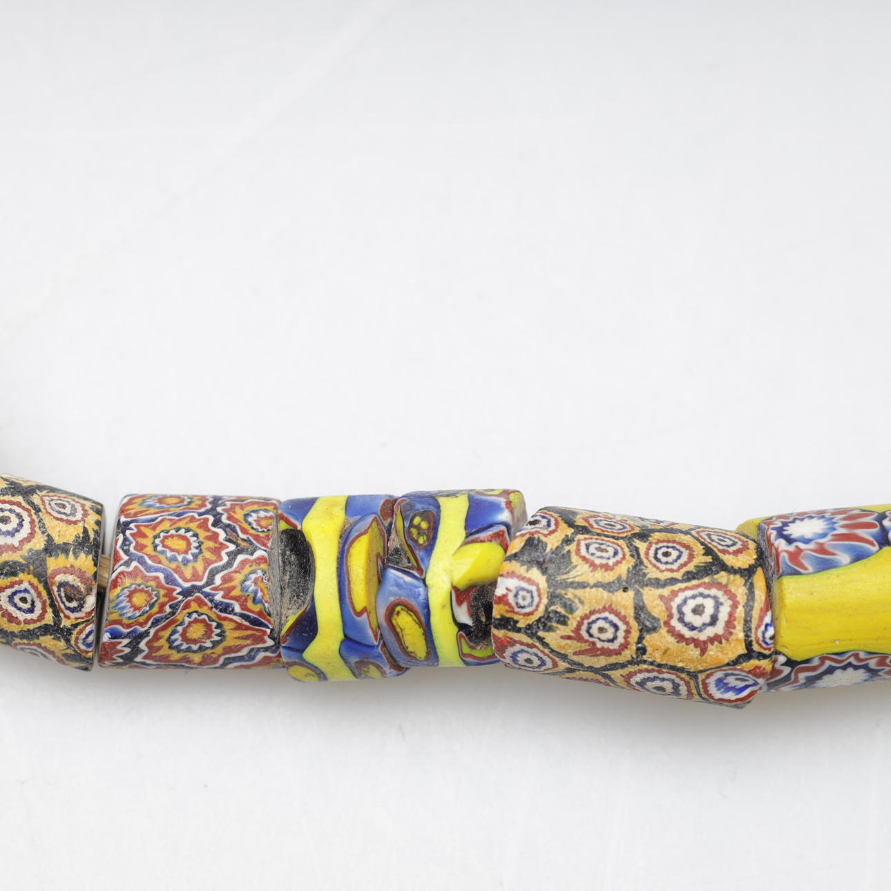Perlas de pasta de vidrio en diferentes tamaños y colores. Hilo vegetal. Largo aproximado 78 cm.