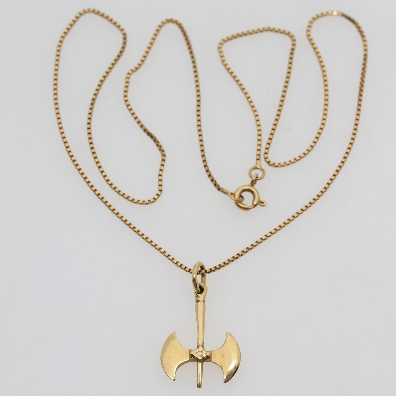 2725897. COLGANTE con cadena, oro 18k, hacha, 1900.