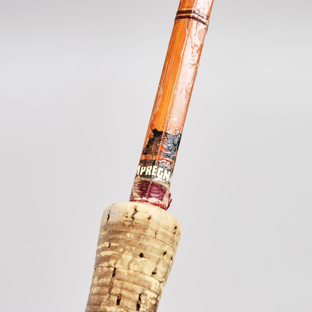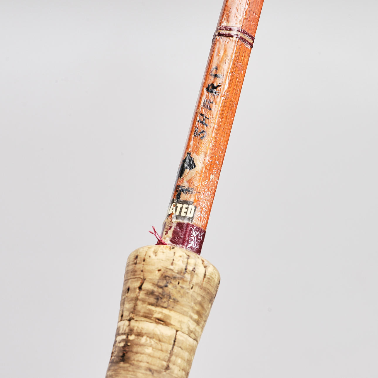 Caña partida empalmada impregnada de aceite, 12'. Mide 372cm.