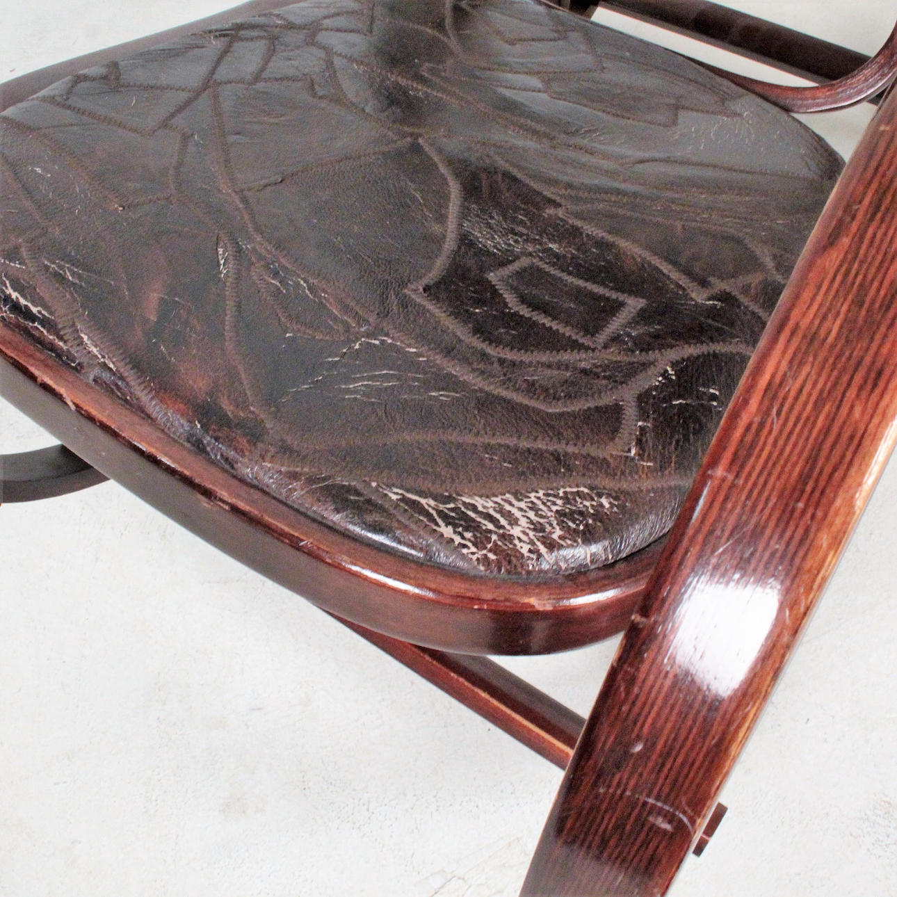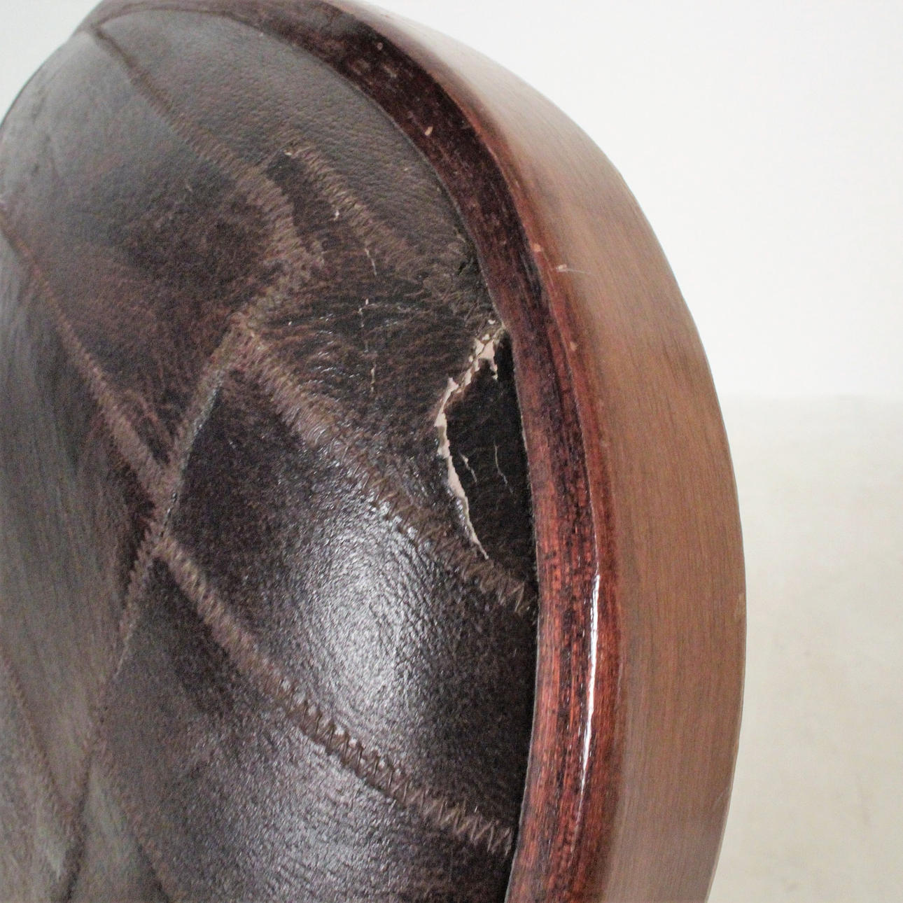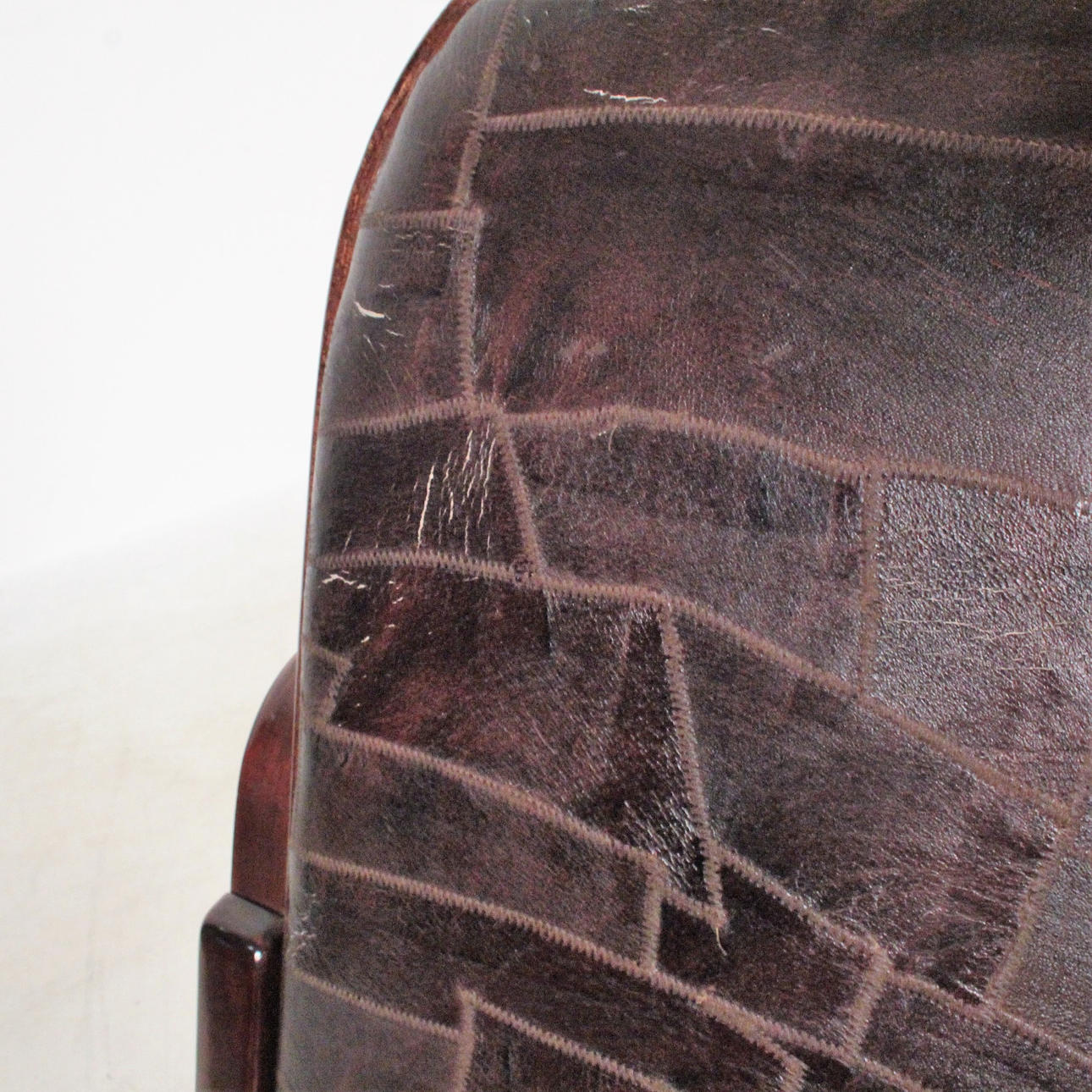 Estado de uso relacionado con la edad, abrasiones, manchas, porosidad del cuero.