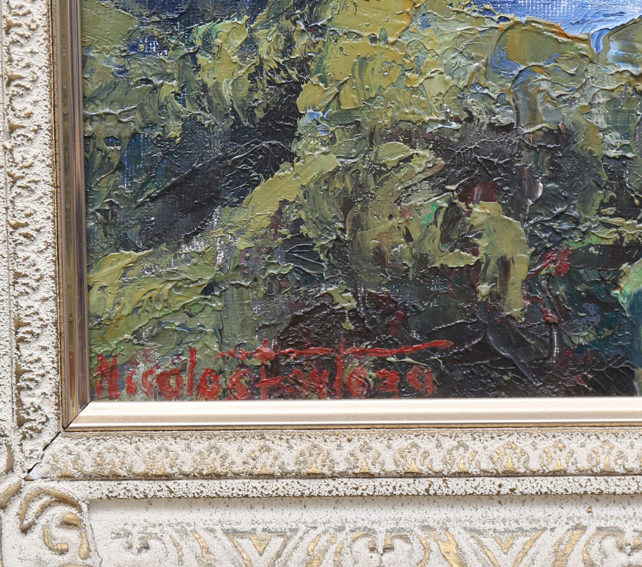En buen estado. Marco en madera estucada y pintada, con leves pérdidas.