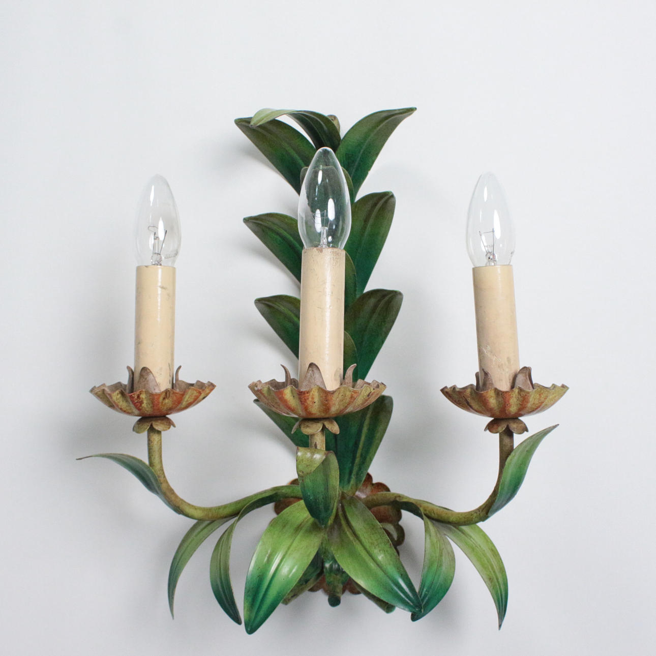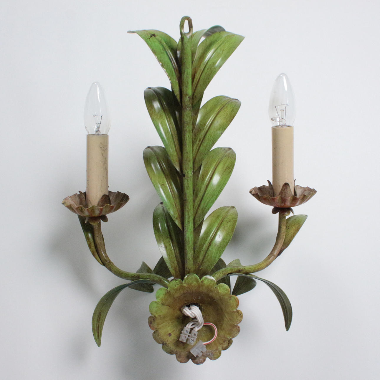 Aplique floral, estilo Hollywood Regency, metal, pintado, medidas aprox.: A. 40 cm, A. 35 cm, profundidad 22 cm.
