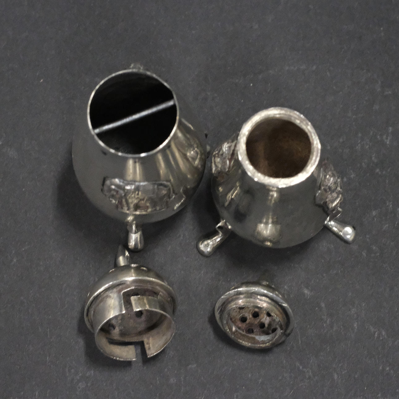 Esterlina con sello MADE IN SIAM. Altura 6,5 y 7,5 cm. Peso total aproximado 53g.