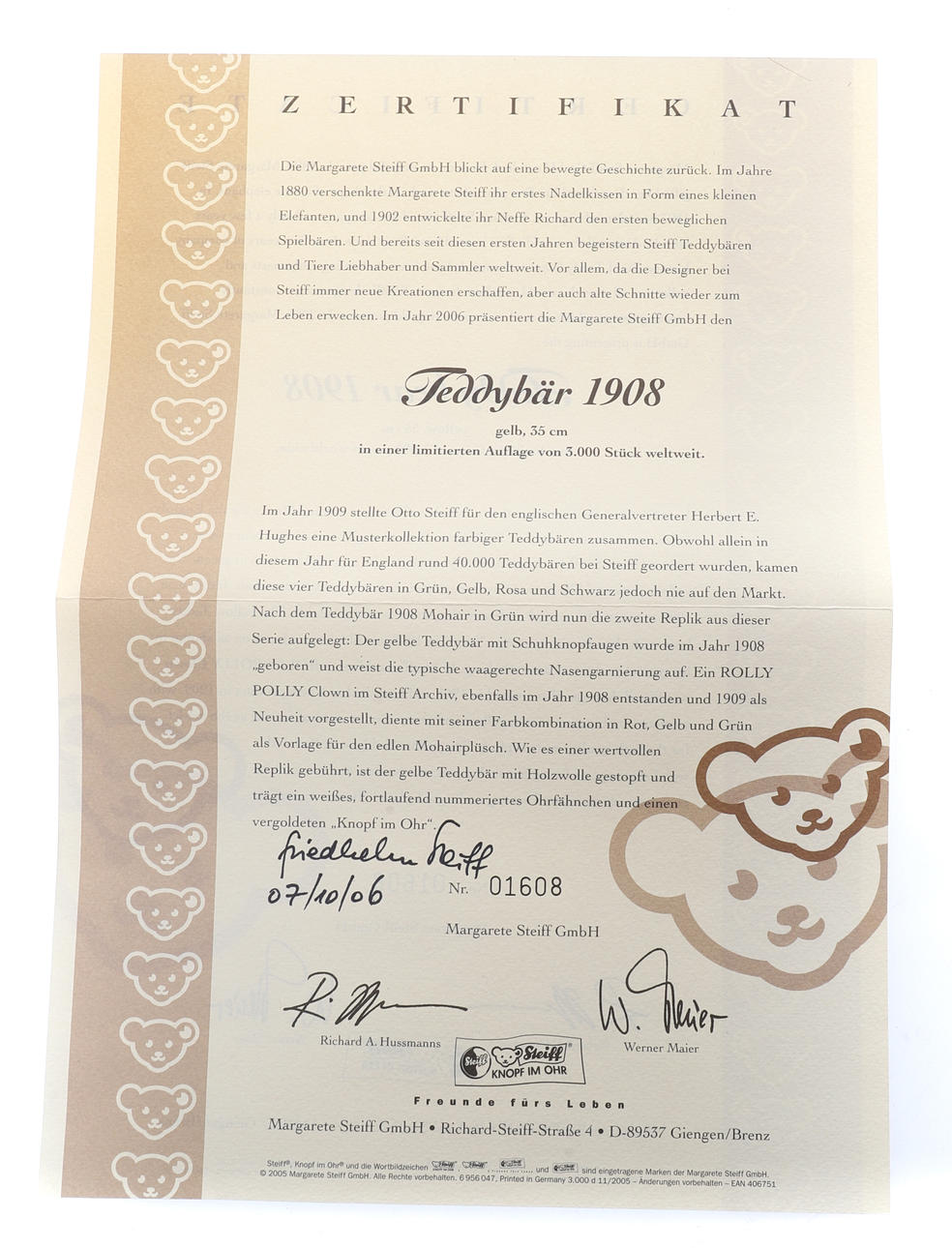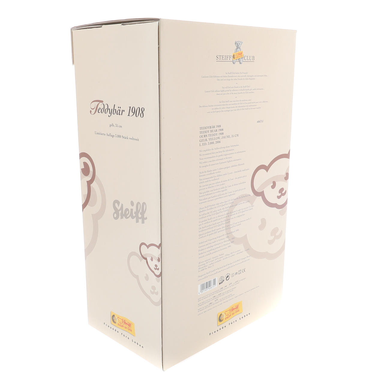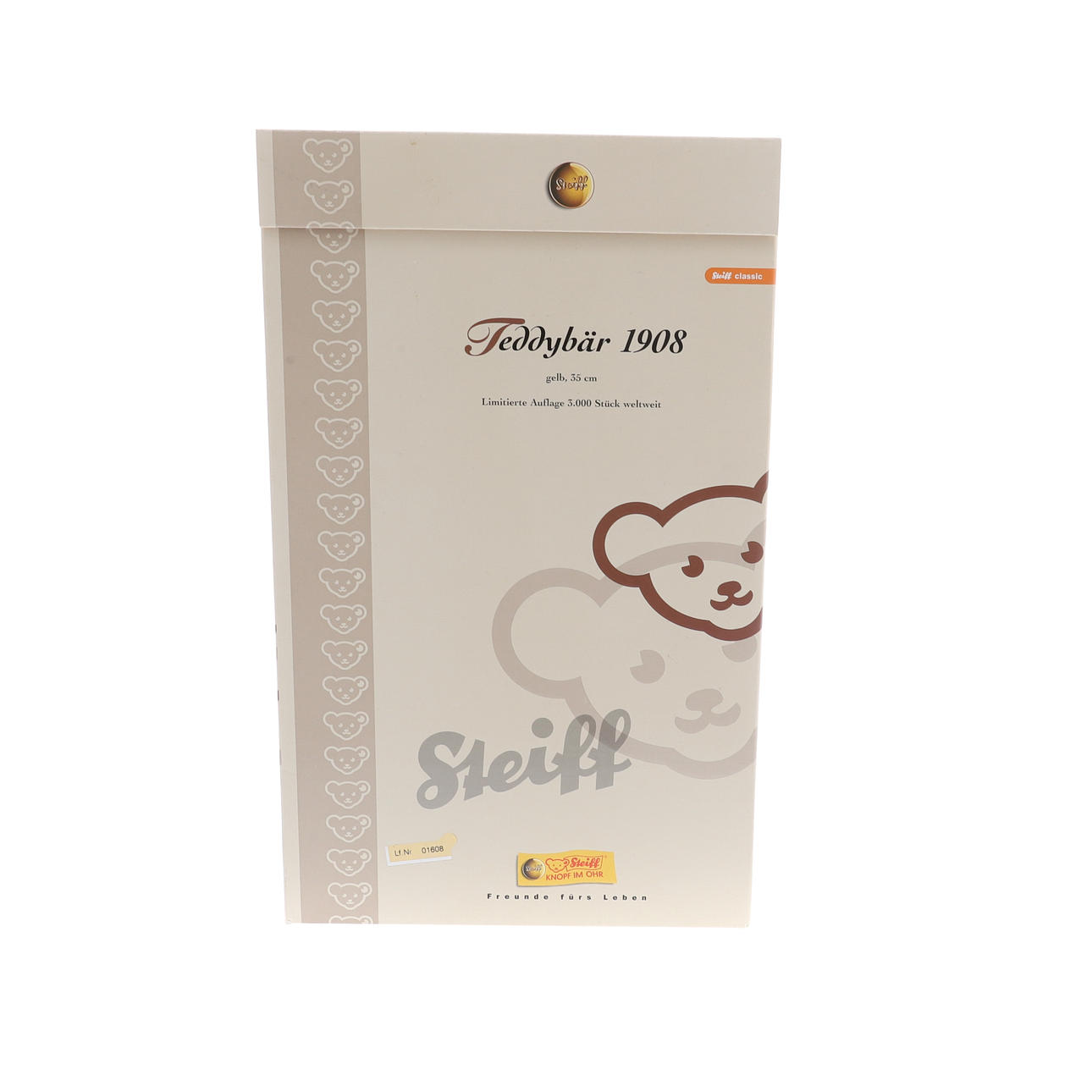 color amarillo, con growler, edición limitada 1608/3000, crotal numerado con botón chapado en oro en la oreja, 35 cm, en caja con certificado, 24 cm x 16,5 cm x 40 cm.