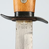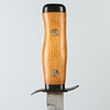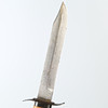 Mango de acero ennegrecido con rodillo de madera, hoja de un solo filo con punta bowie y marcado con 10 dentro de círculo (Radom). Hoja 15,5, largo total 27 cm.