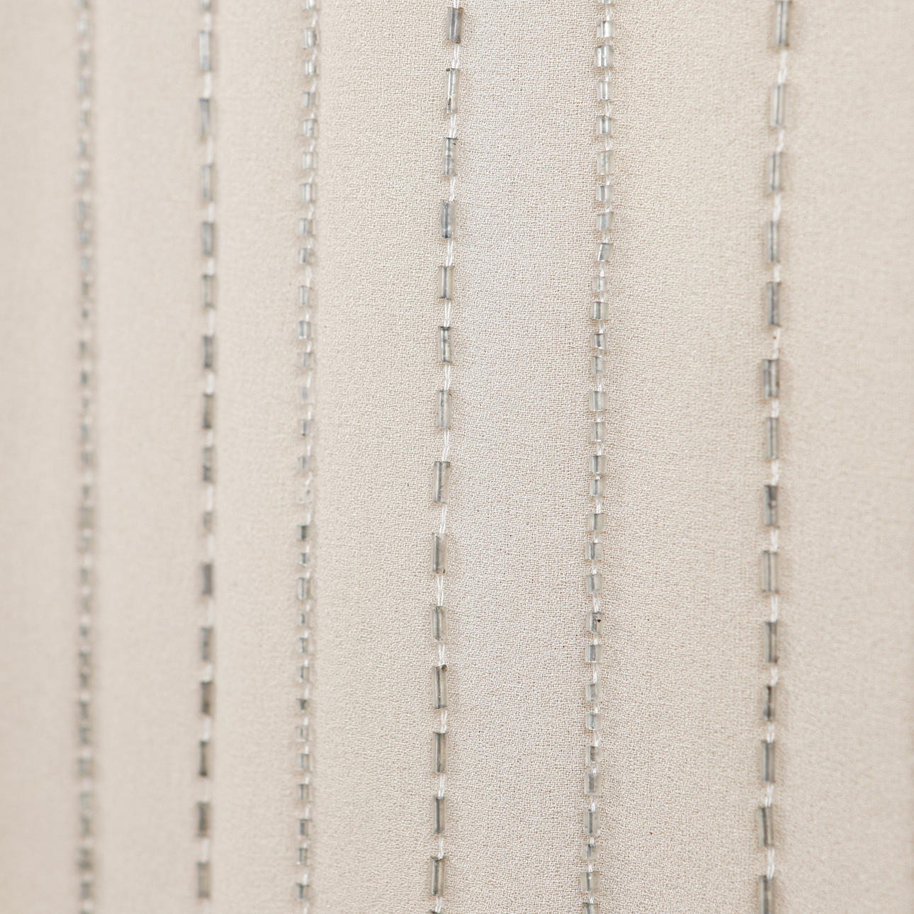 Vestido en seda bordada/pedrería con enagua de poliéster. Ancho del busto 92 cm aprox. Largo aproximado 89 cm.