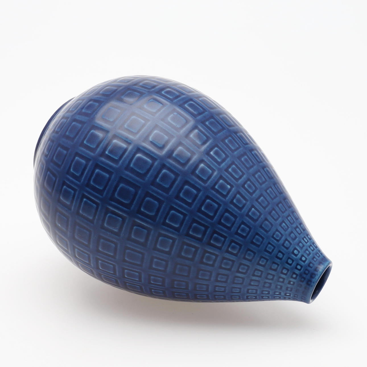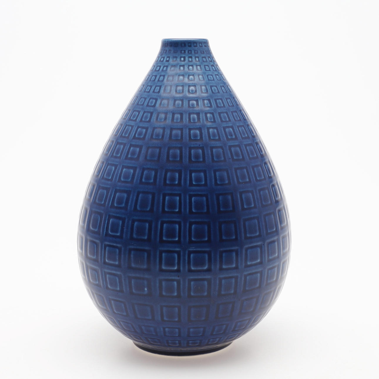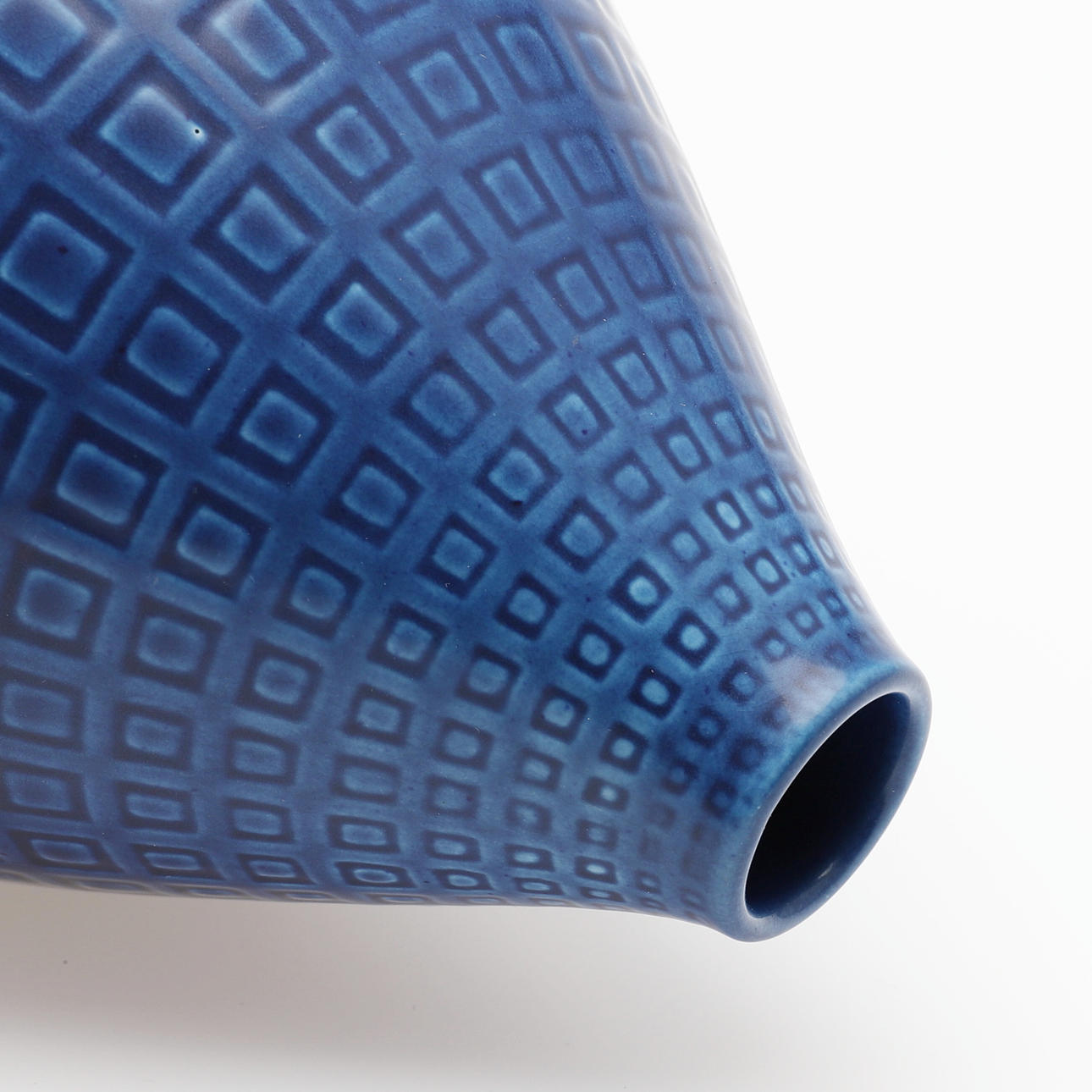 Esmalte azul con decoración geométrica, marcado Marselis, Dinamarca 2631, altura 20 cm.