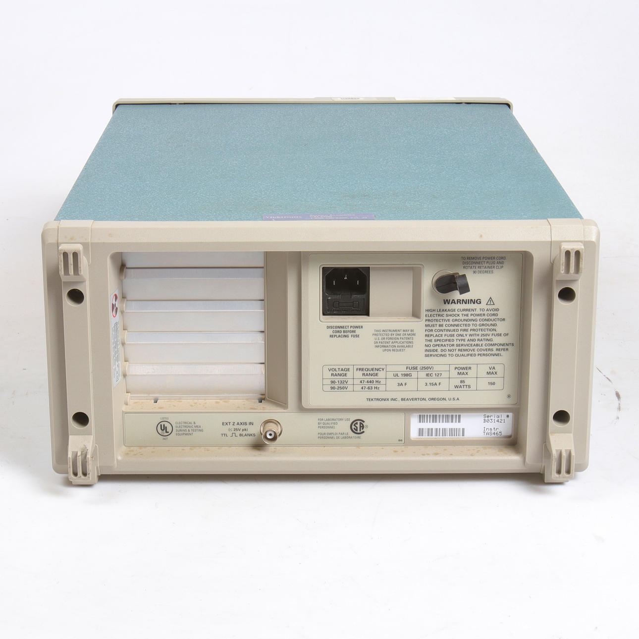 Osciloscopio analógico. 2 canales 100 MHz. Longitud 37,5, anchura 48, altura 15,5 cm.