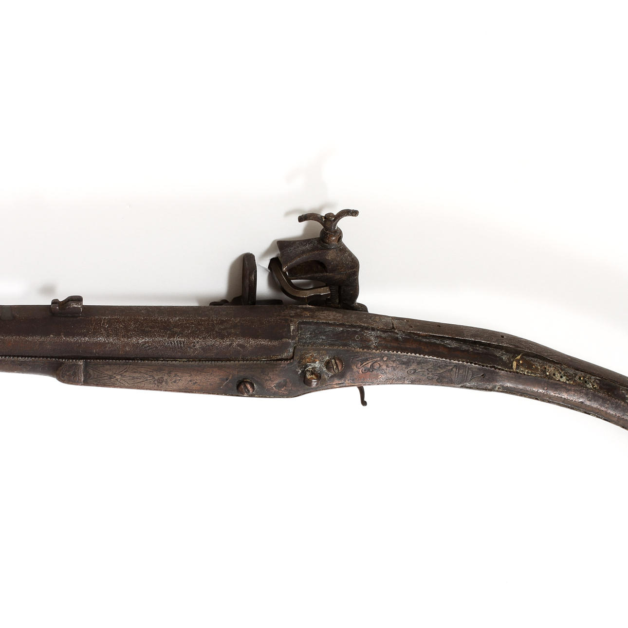 Tronco con decoración grabada en hierro y latón. Longitud 150 cm.