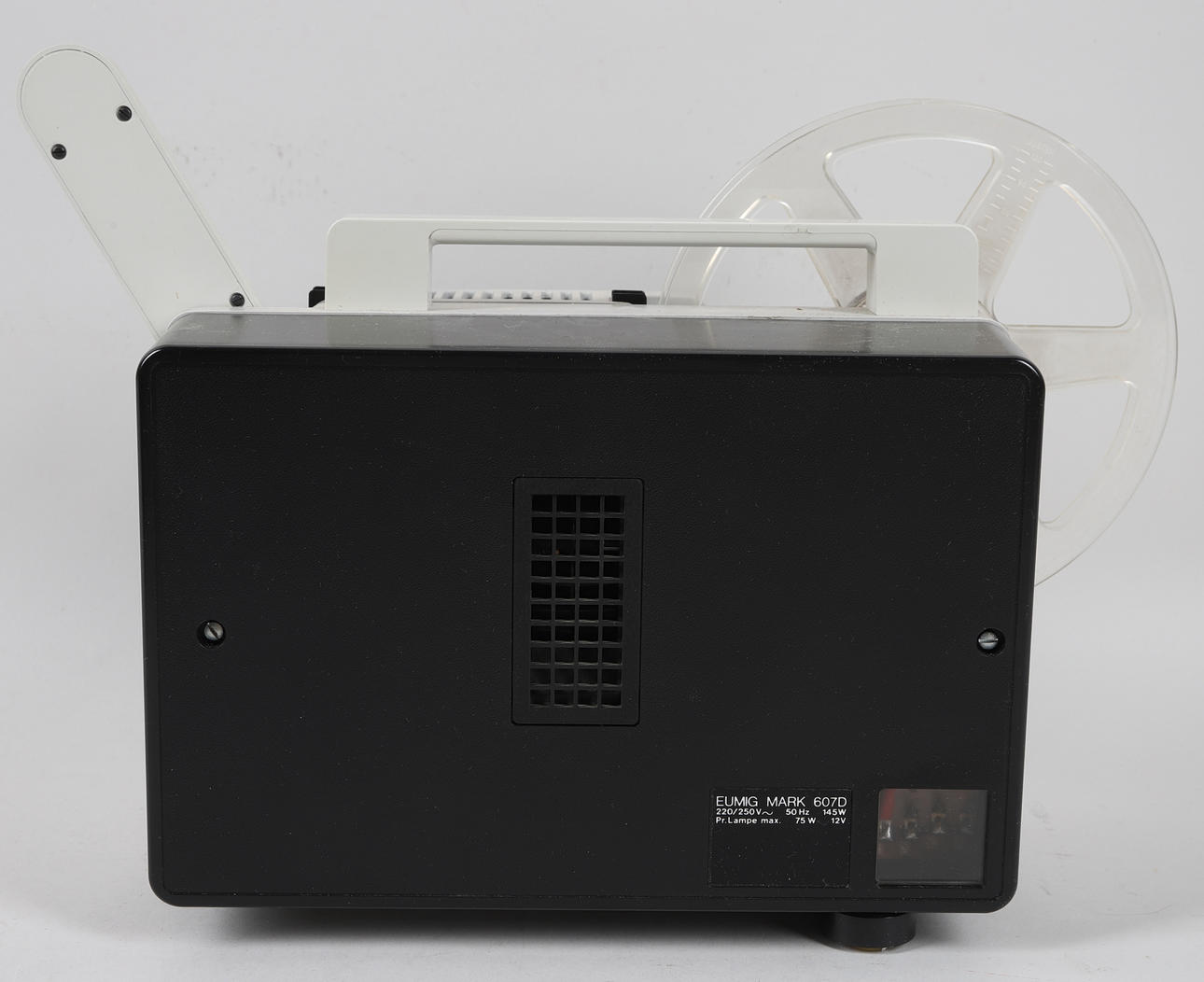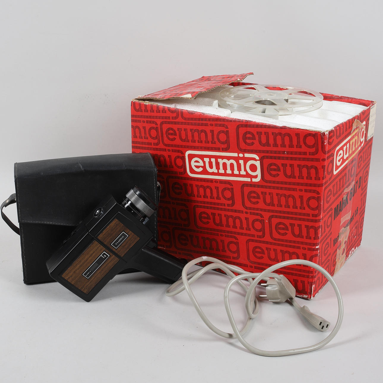 Proyector, Eumig mark 607 D. Cámara de película, Chinon super 8 classic, lente de zoom réflex F:1.7 8.5-25.5mm 723 zoom motorizado, número de serie 383744.
