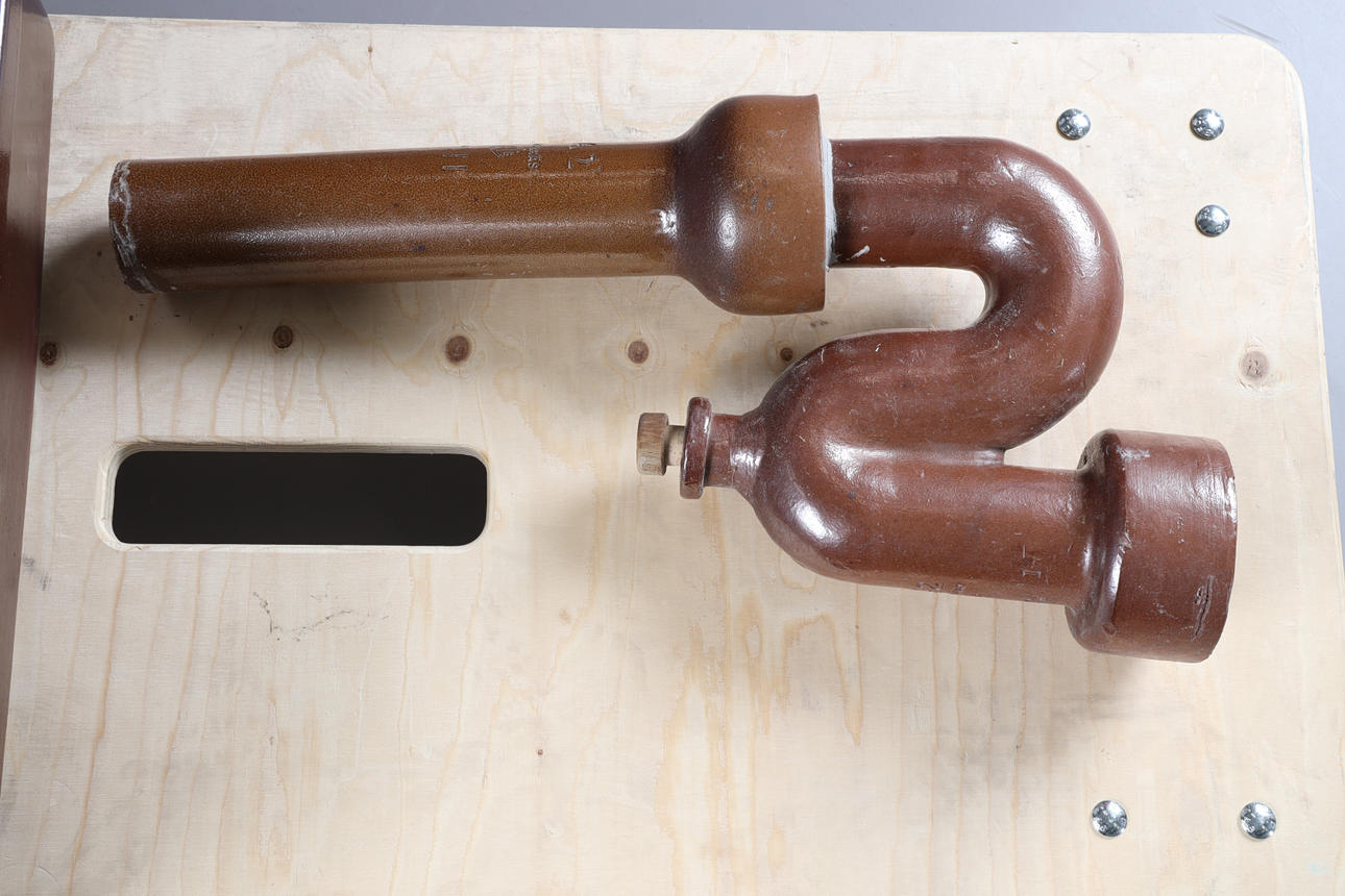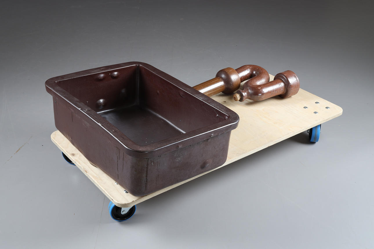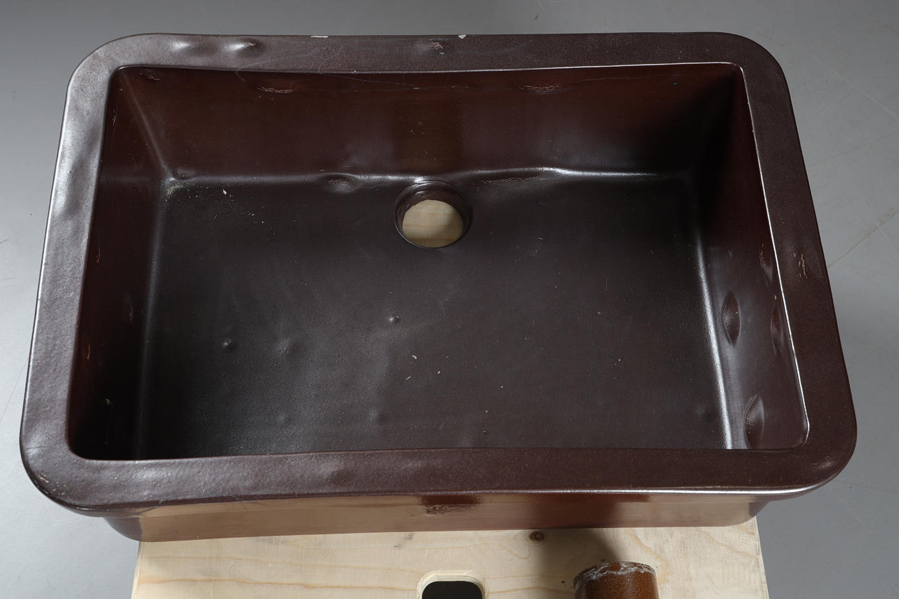 Fregadero y caños con sifón, gres esmaltado al sal. Modelo nº 4499:31. Medidas del fregadero 21 x 69 x 48 cm aprox.