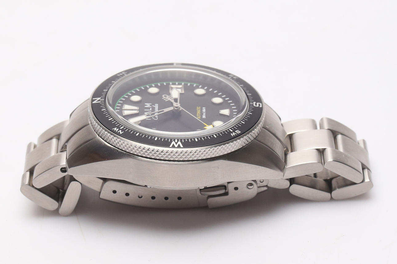 Movimiento: Seiko NH35, automático, Frec./h 21.600 bph (3Hz), 24 rubíes. Reserva de marcha de 41 h Cristal: Cristal de zafiro abovedado, tratamiento antirreflectante y revestimiento protector contra huellas dactilares Resistencia al agua: 20 atm/200 m Correa: Eslabón de acero con hebilla premium.
