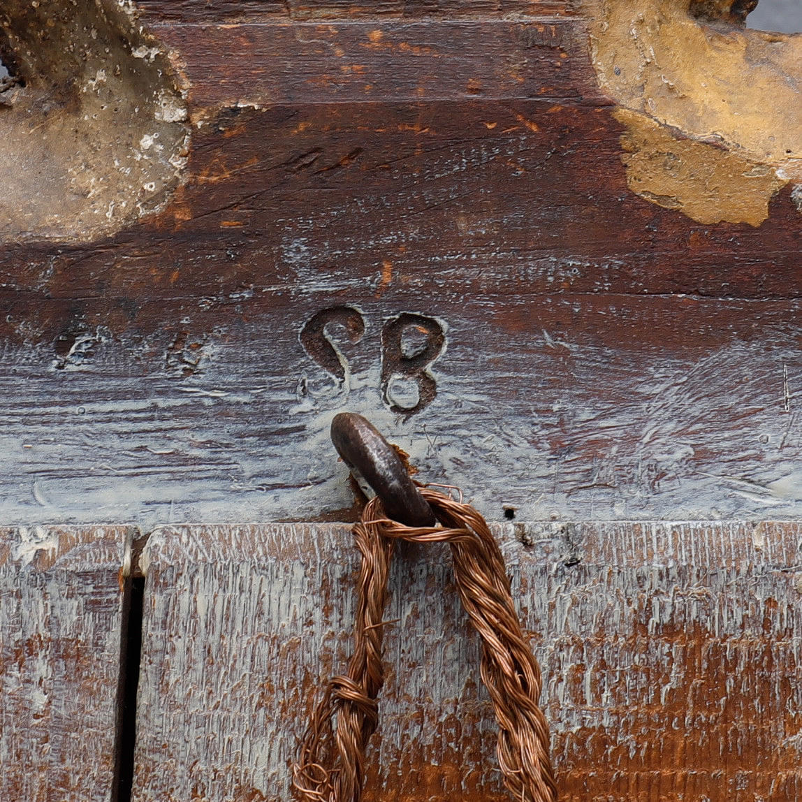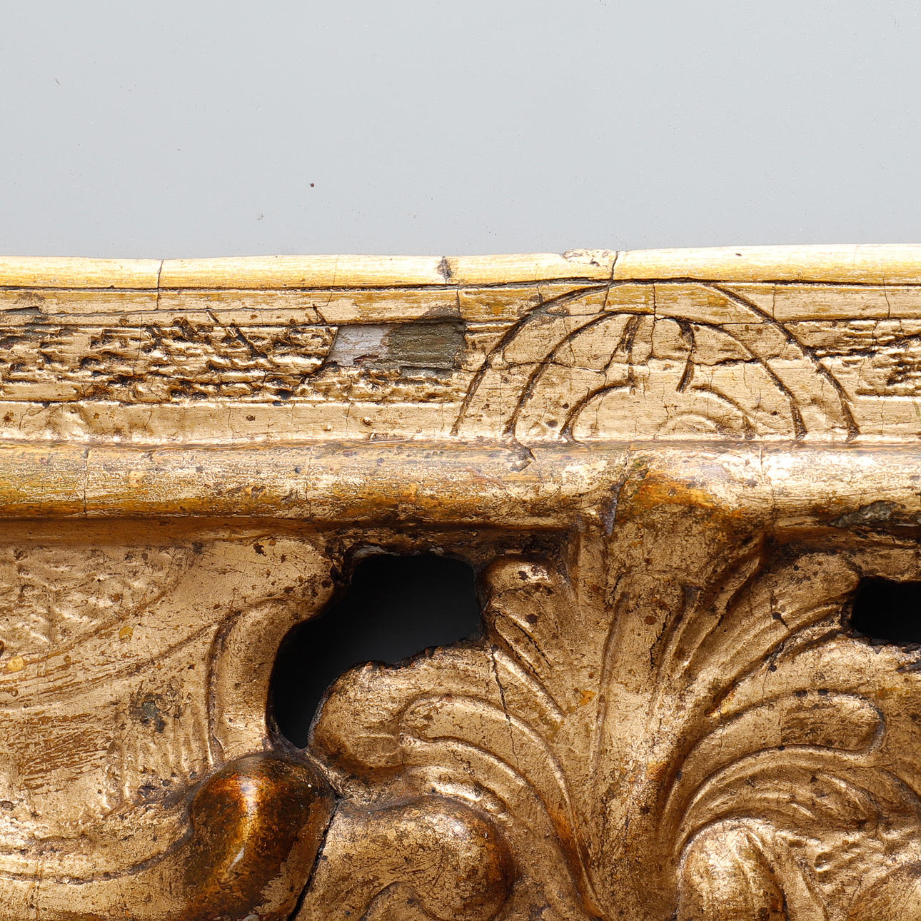 Decoración tallada en madera y decoración pastel, bronceada, alto 93 cm, ancho 39 cm.