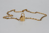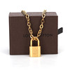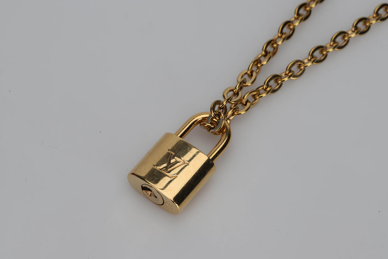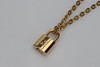 Collar dorado con colgante en forma de candado marcado LV, Louis Vuitton Paris.