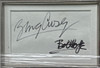 Una hoja de papel enmarcada y firmada por Bob Hope (estadounidense 1903-2003) y Bing Crosby (estadounidense 1903-1977) que incluye una fotografía de los dos juntos, con un certificado de autenticación adjunto en la parte posterior, tamaño del marco 42 x 54 cm.