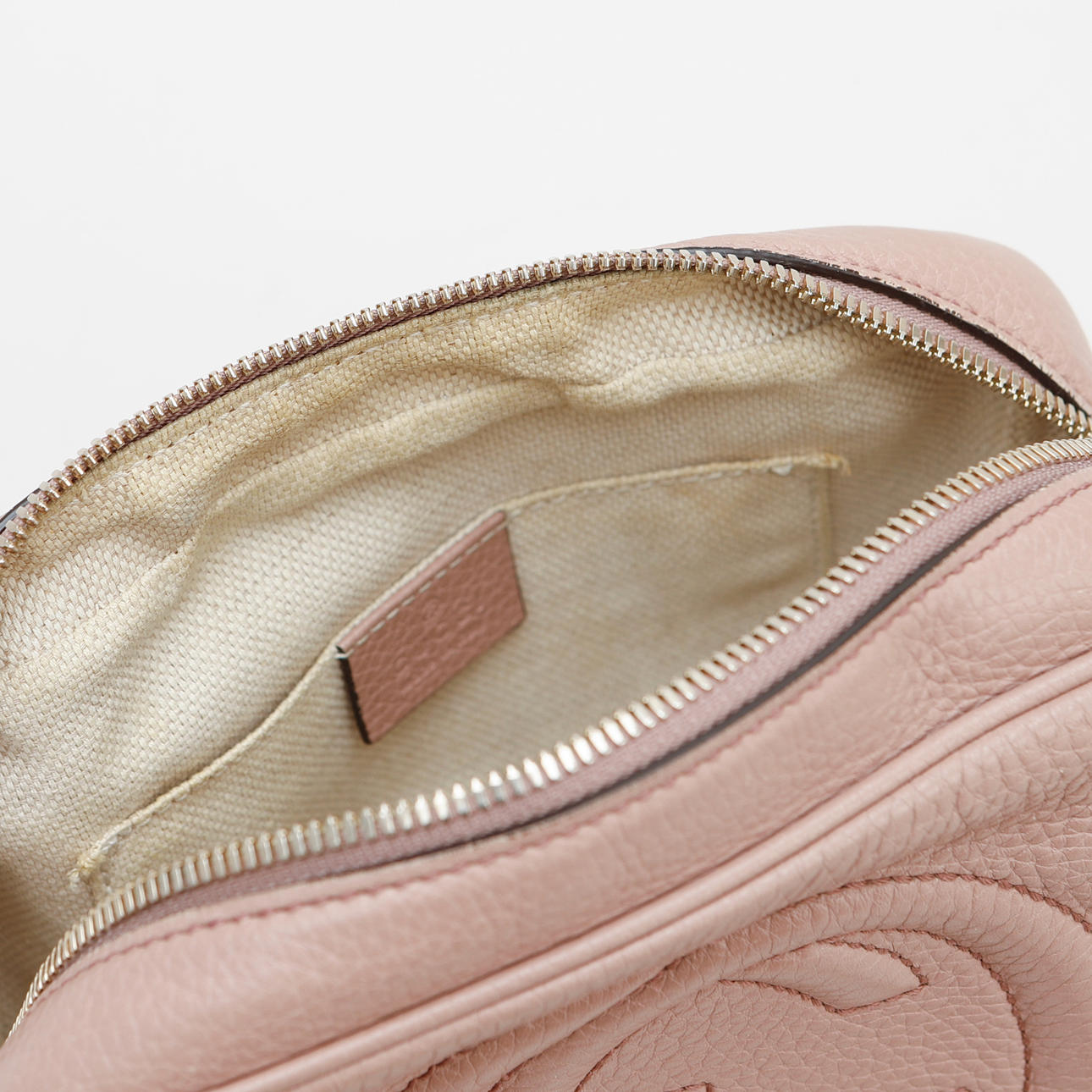 Bolso en piel beige rosa con logo GG. Correa de hombro ajustable. Dos compartimentos interiores. Aproximadamente 21 x 15 x 7 cm. Marcado Gucci hecho en Italia y número de serie. Bolsa de polvo incluida.
