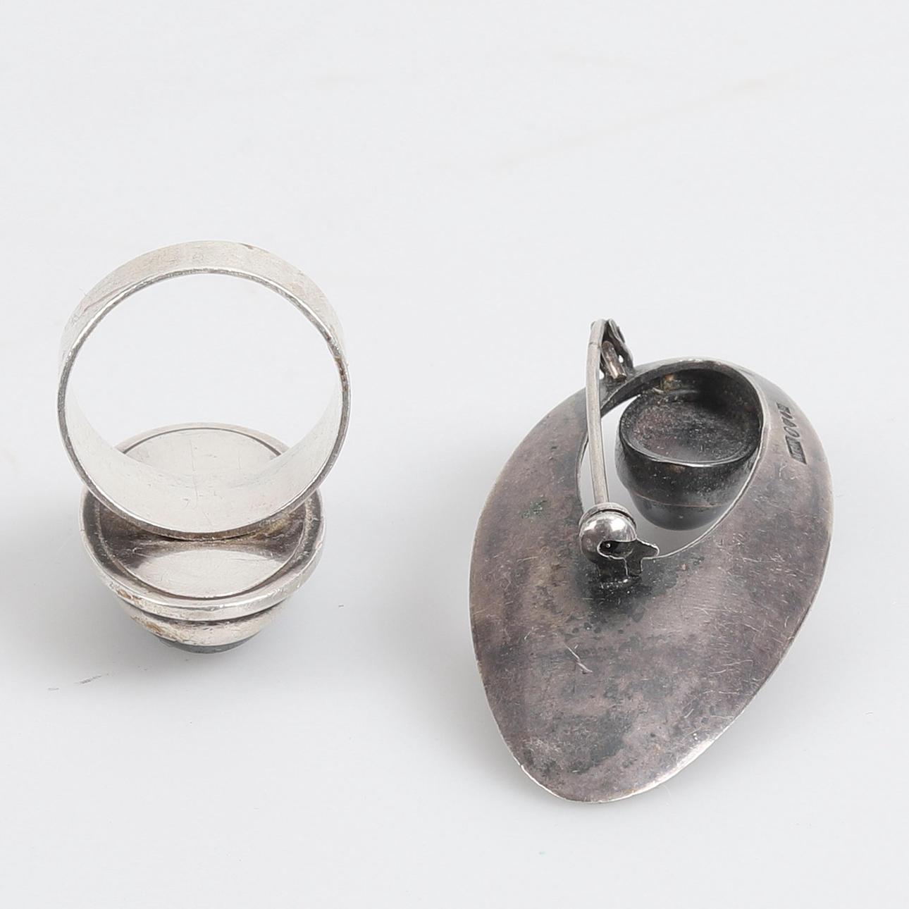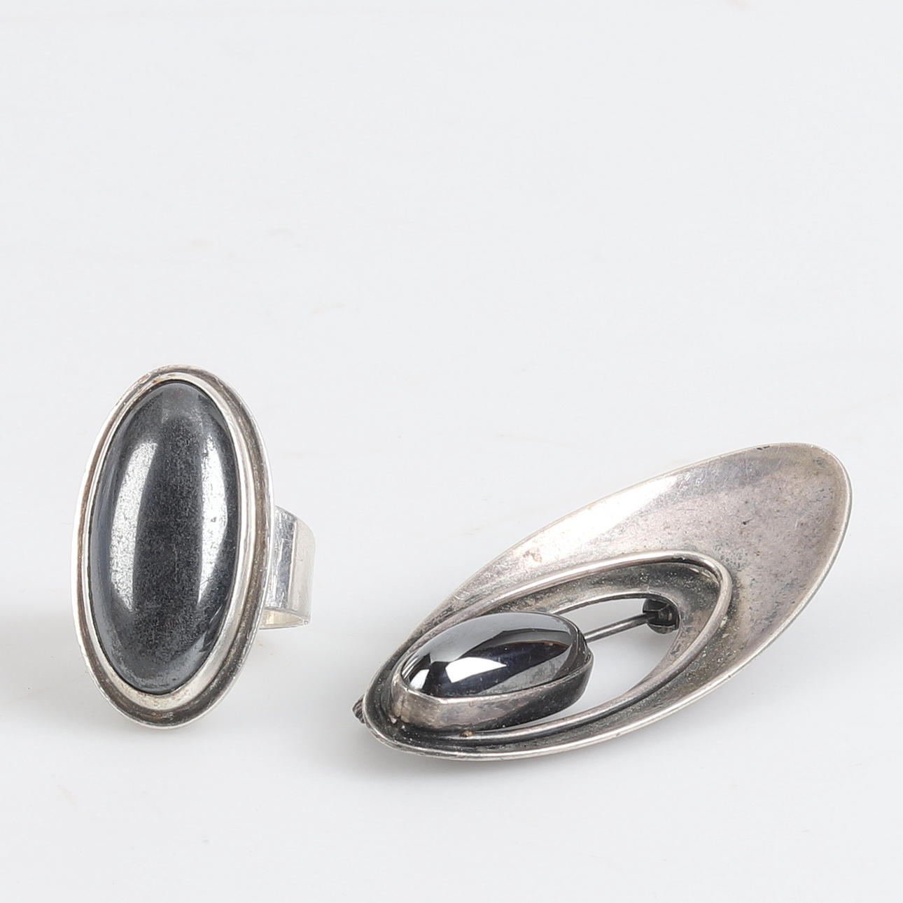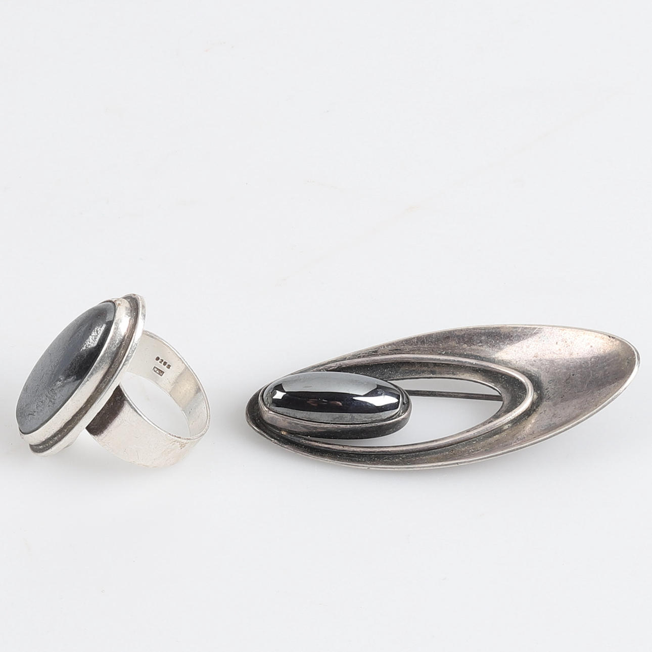 2820324. BROCHE Y ANILLO, Plata de primera ley, Hematites.