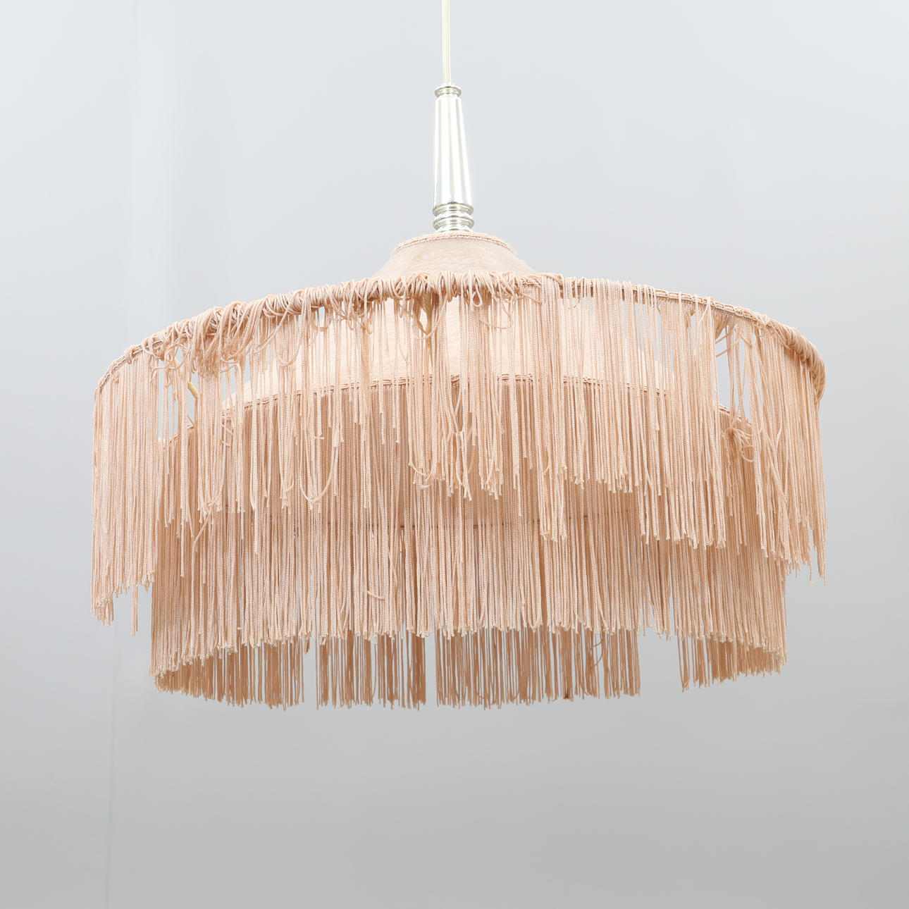 LÁMPARA DE TECHO con flecos, rosa pálido.