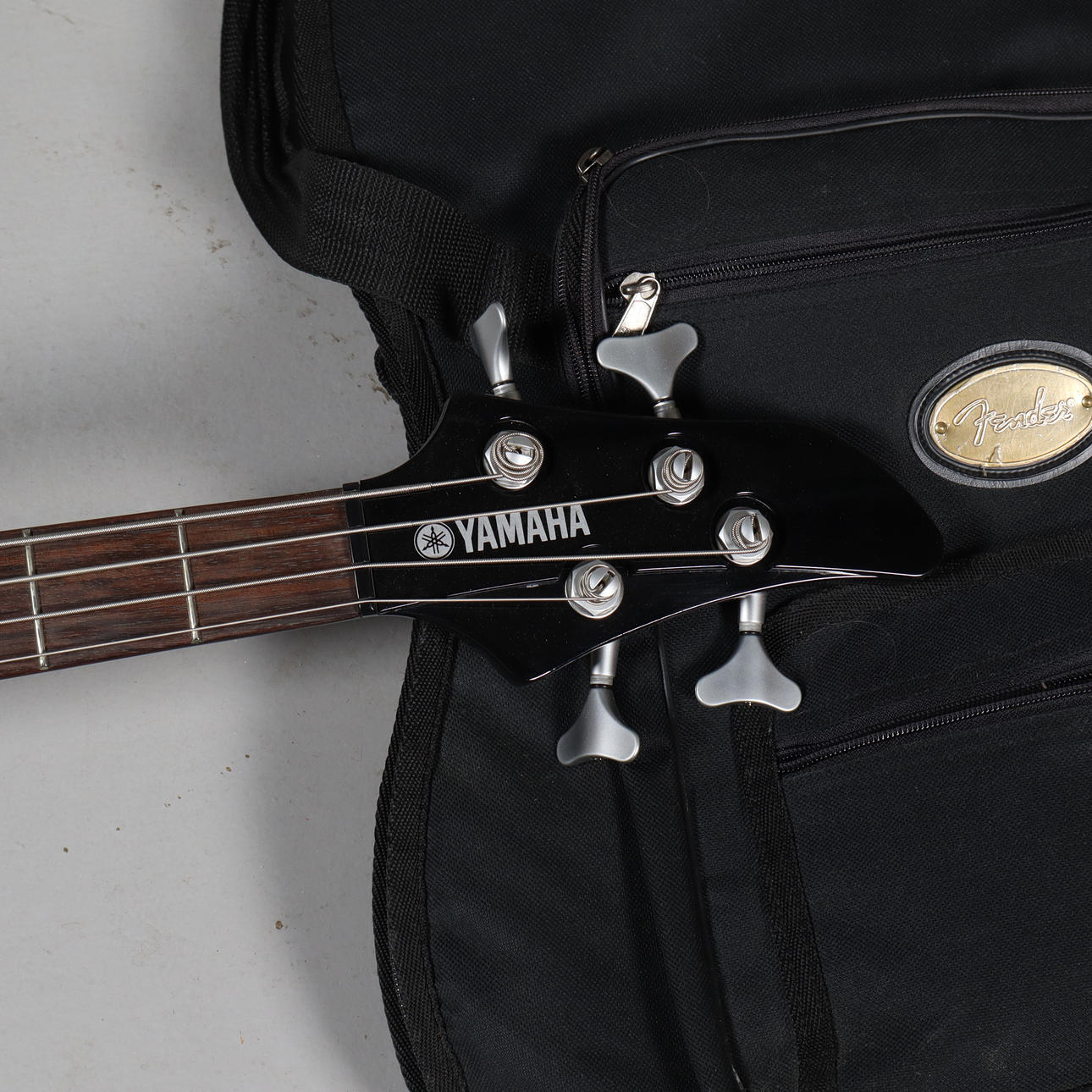 incluido un sintonizador (Yamaha YT1000), un estuche blando (Fender), una correa para el hombro y un paquete de cuerdas (Ernie Ball 45-100).