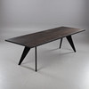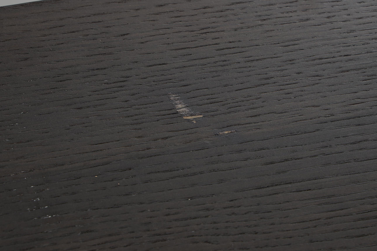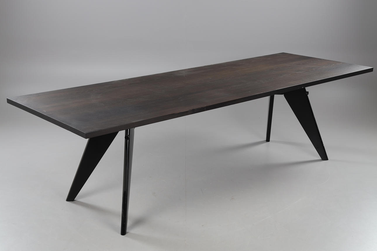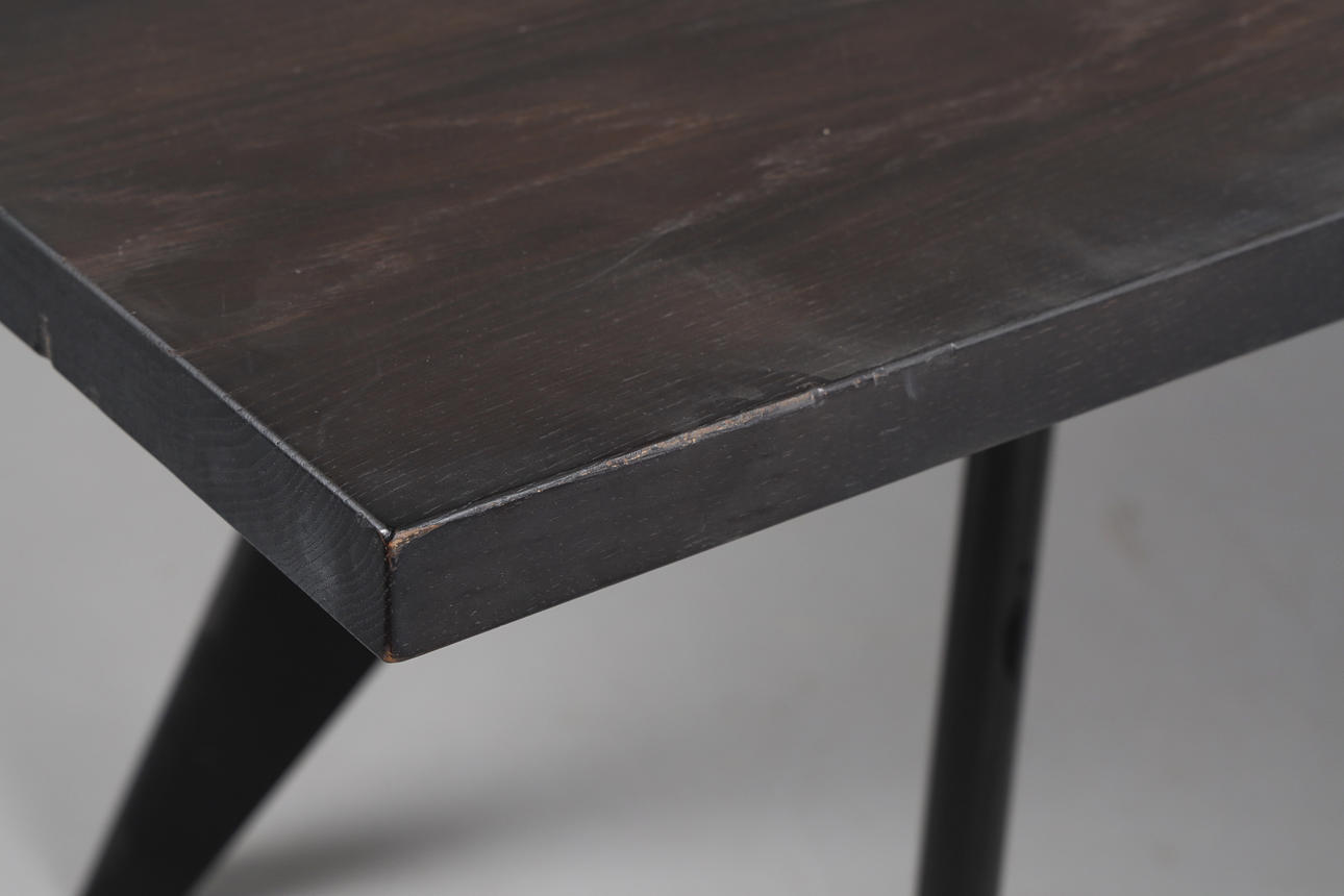 tablero de roble lacado negro, estructura estructurada de acero pintado en polvo negro, altura 74, 260x90 cms.