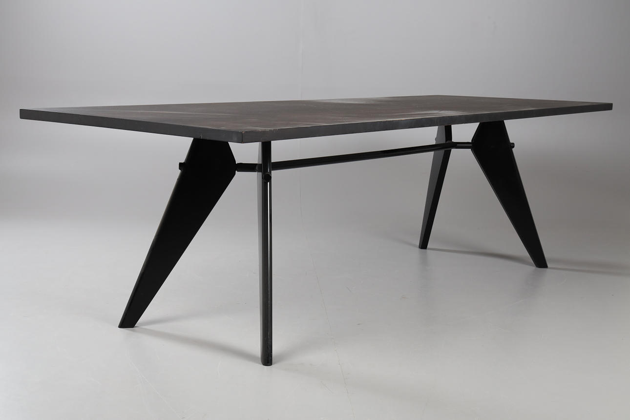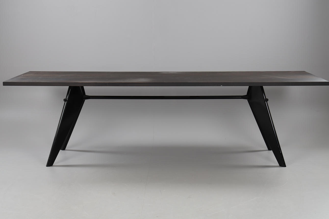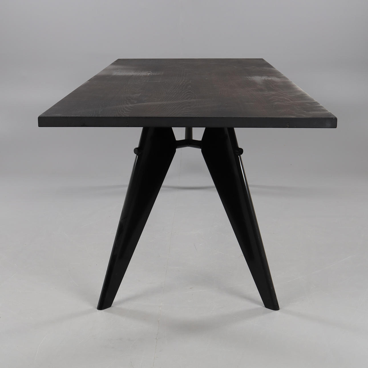 tablero de roble lacado negro, estructura estructurada de acero pintado en polvo negro, altura 74, 260x90 cms.