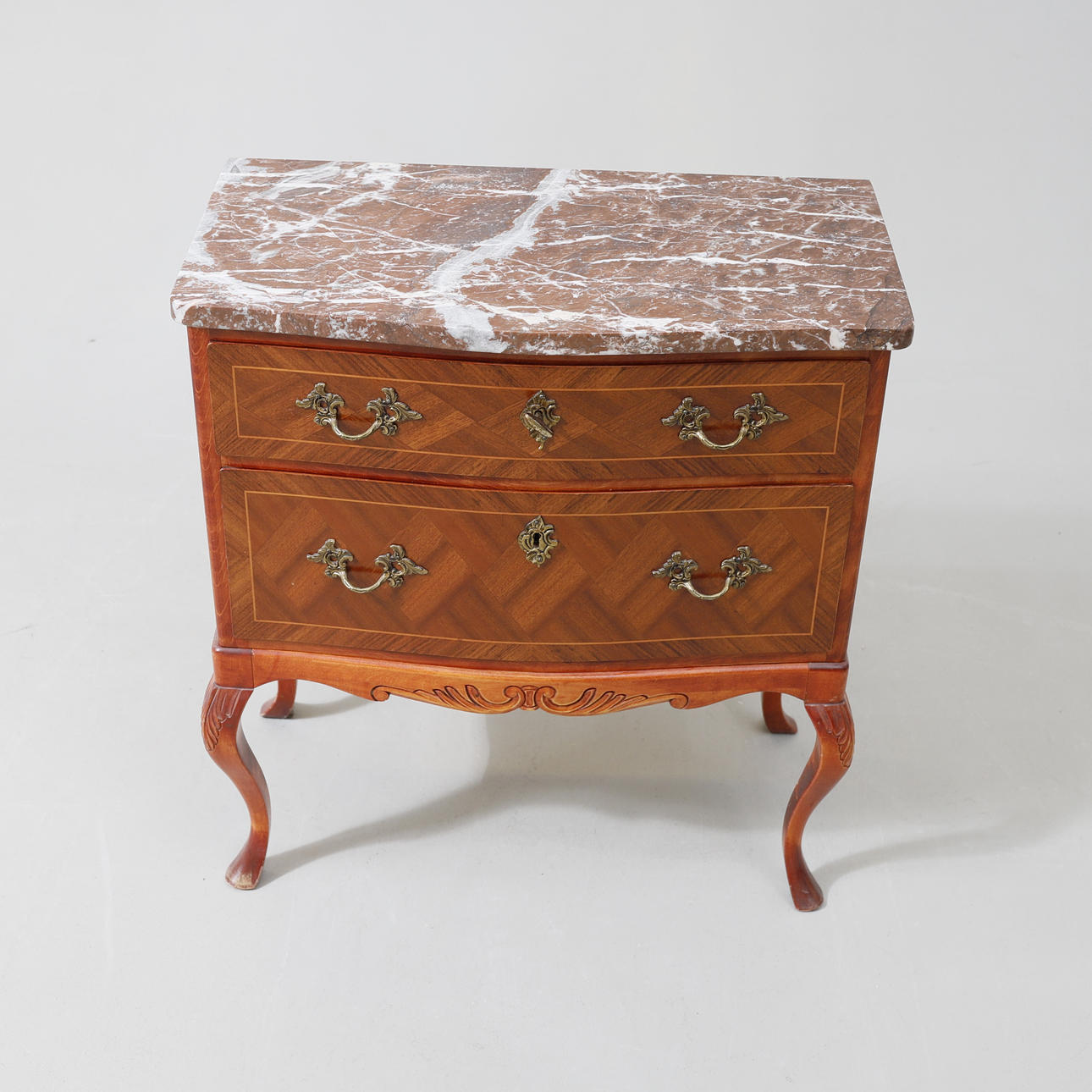 Con placa de piedra. Enchapados en diferentes tipos de madera. Dos cajas.