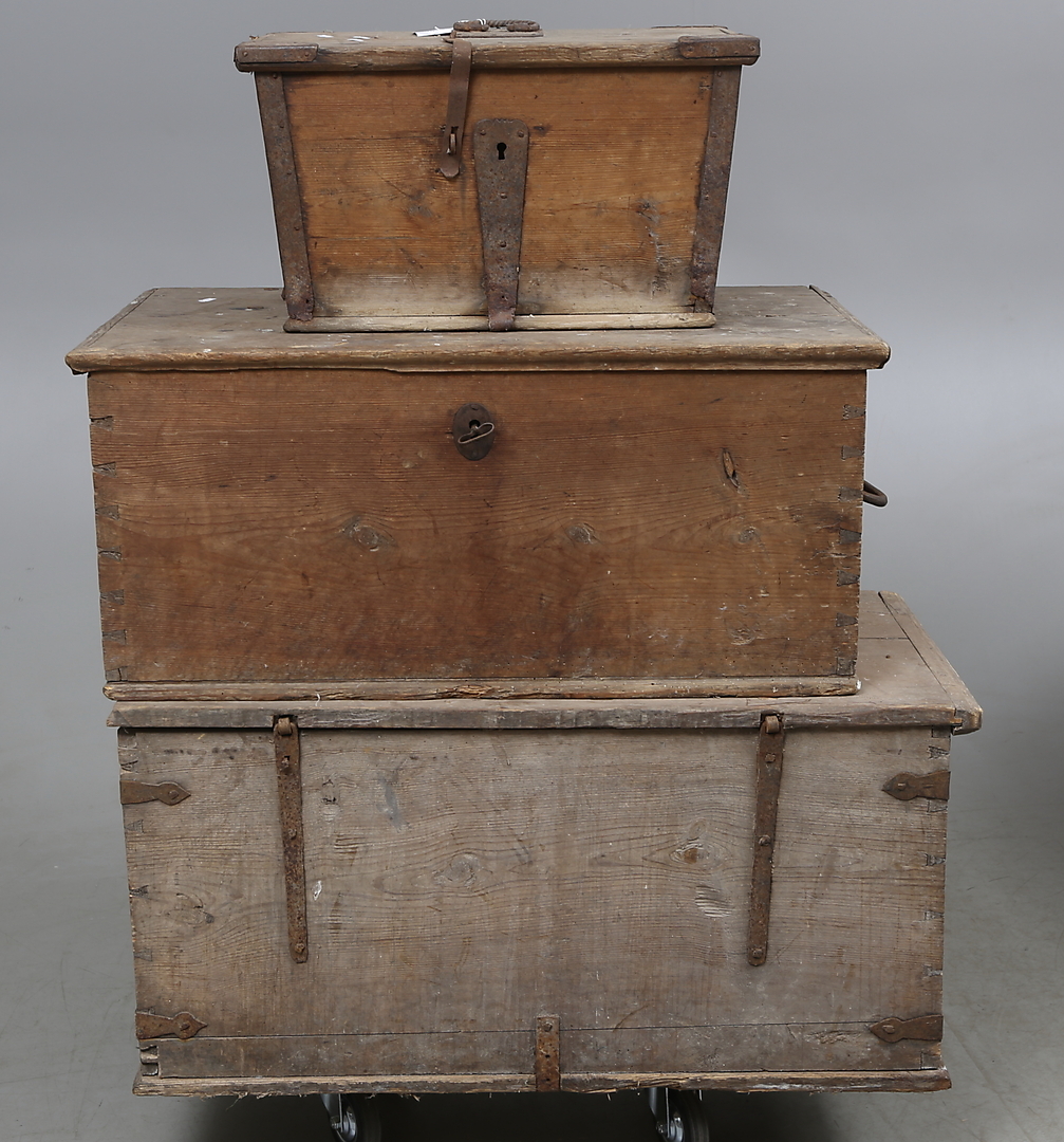 286239. CAJA Y COFRE, 3 piezas, 1700 / 1800.