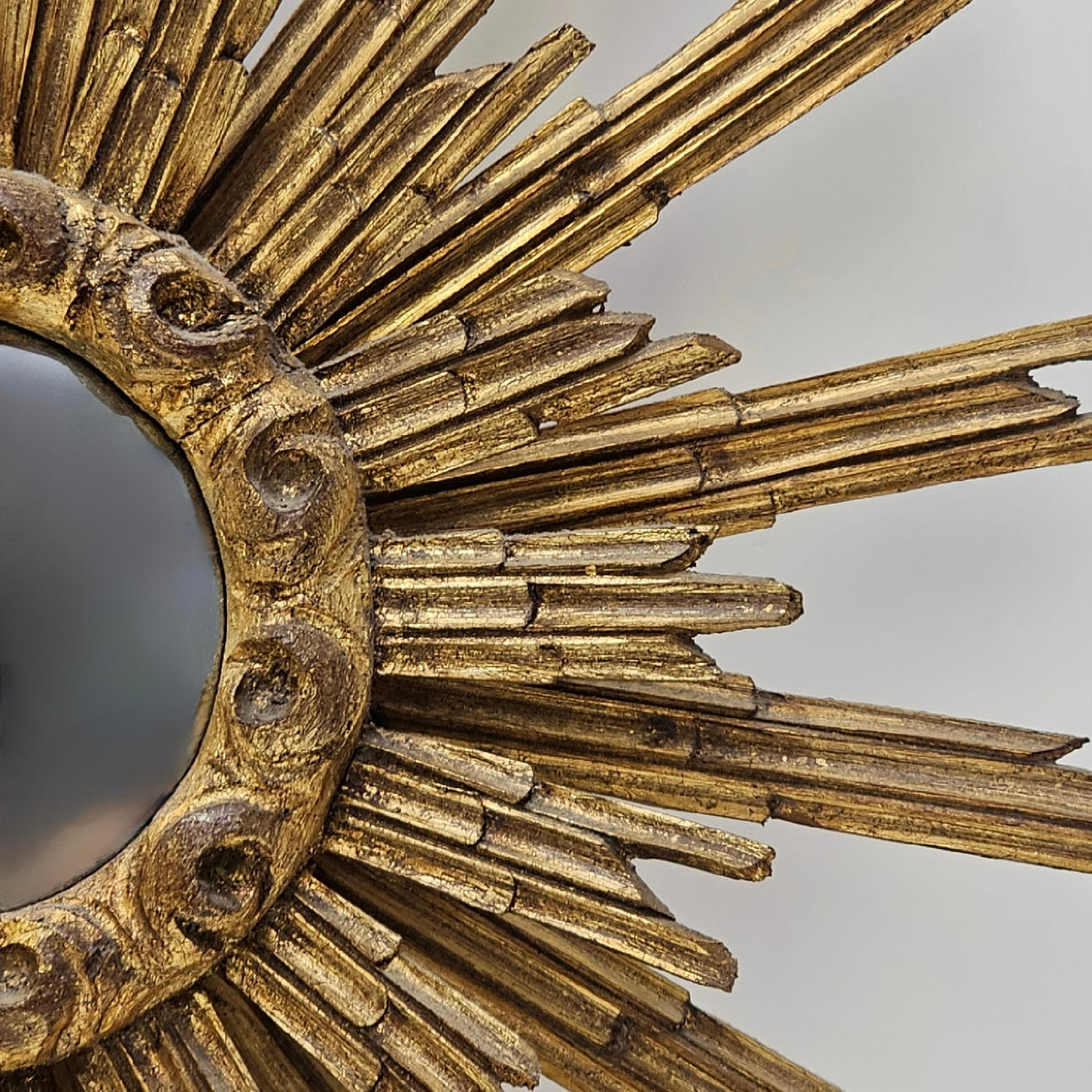 ESPEJO "SOL" EN MADERA TALLADA Y DORADA.