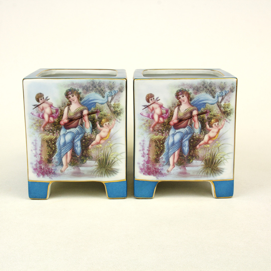 2863896. MACETEROS DE PORCELANA AL ESTILO DE SEVRES.