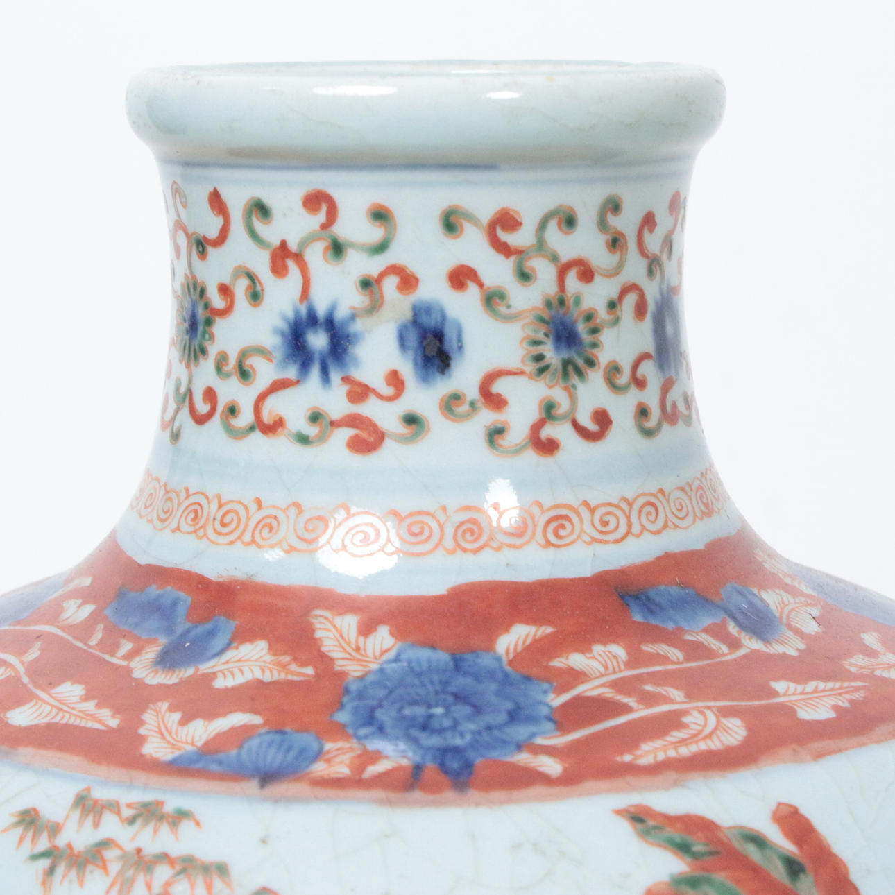 2868038. Jarrón bulboso con pintura policromada.