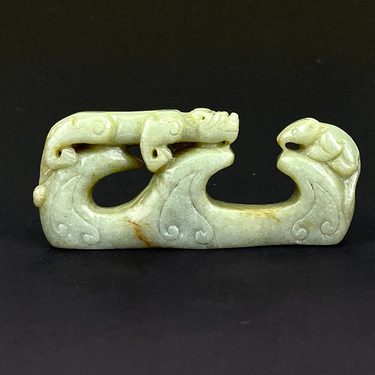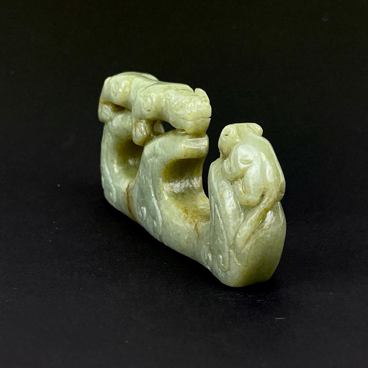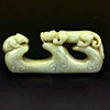 Un portaescobillas de jade chino/piedra dura, L. 10,5 cm. Alt. 4,5 cm.